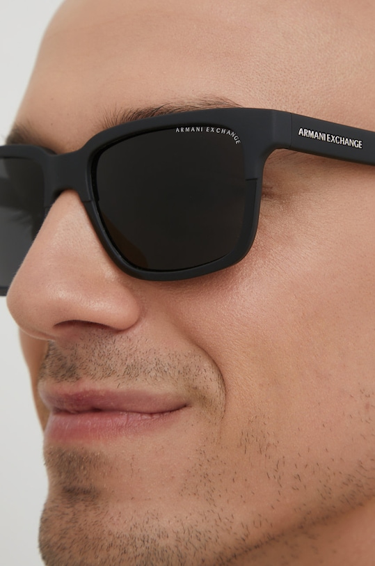 Солнцезащитные очки из коллекции Armani Exchange. Модель с гладкими линзами и пластиковой оправой.
