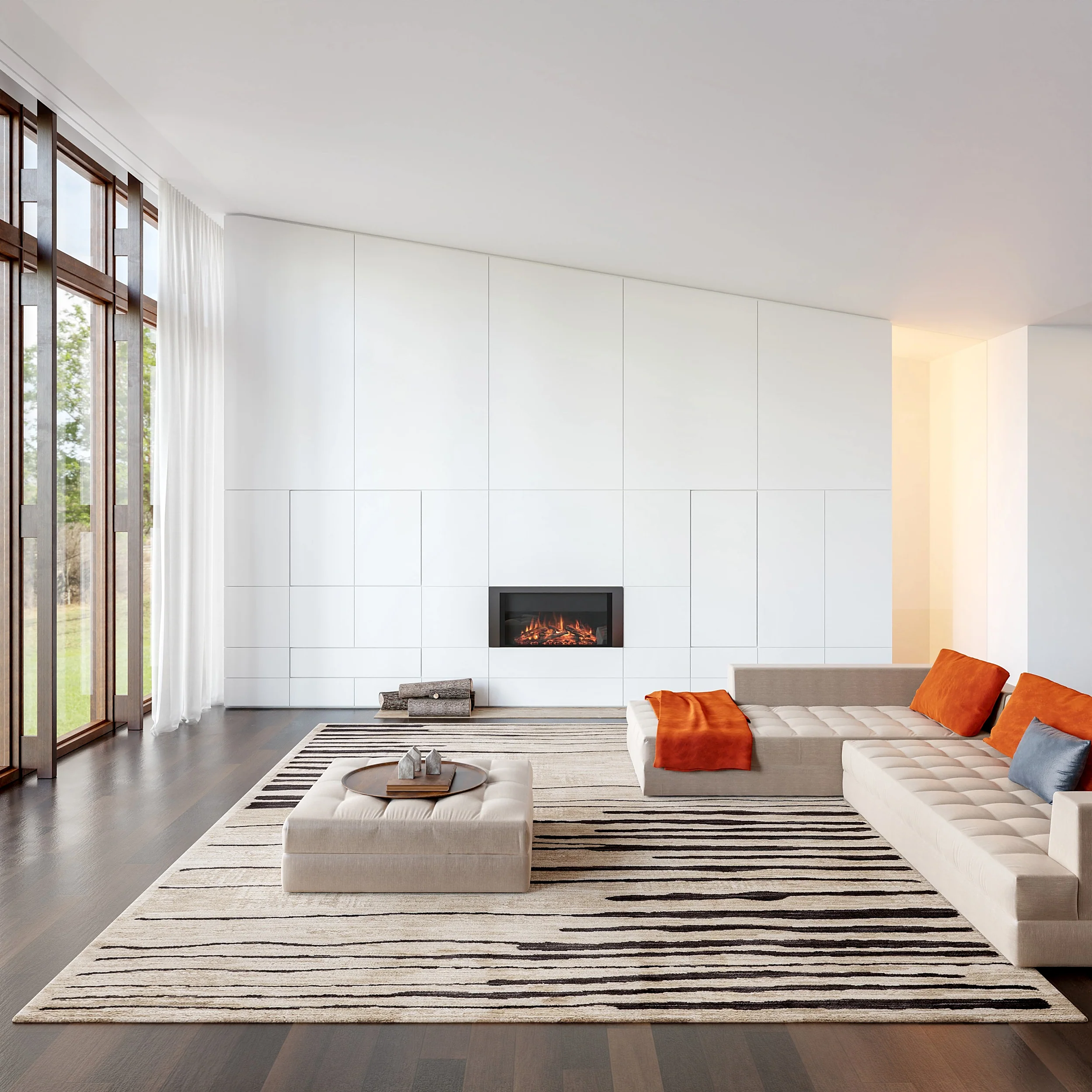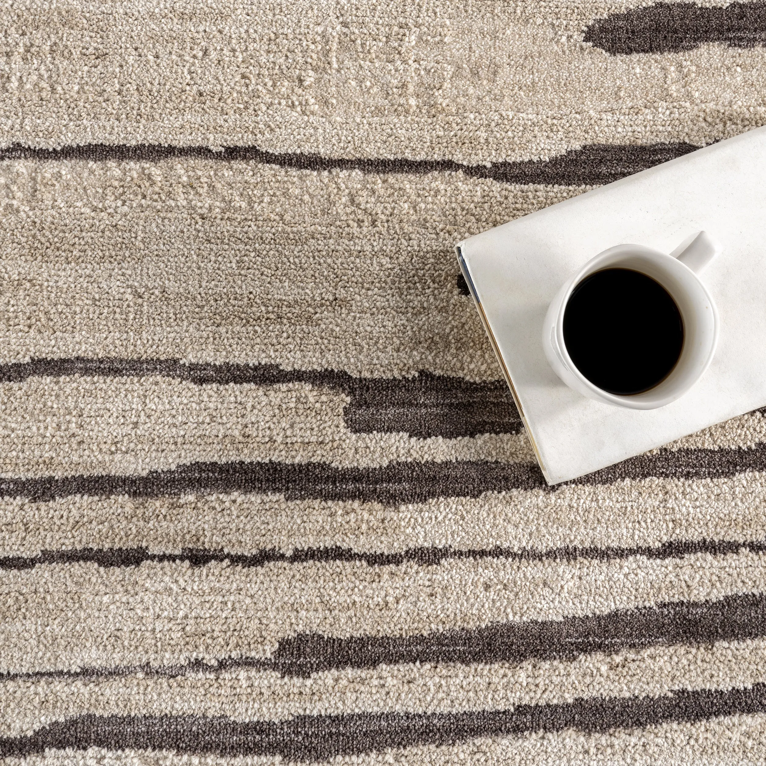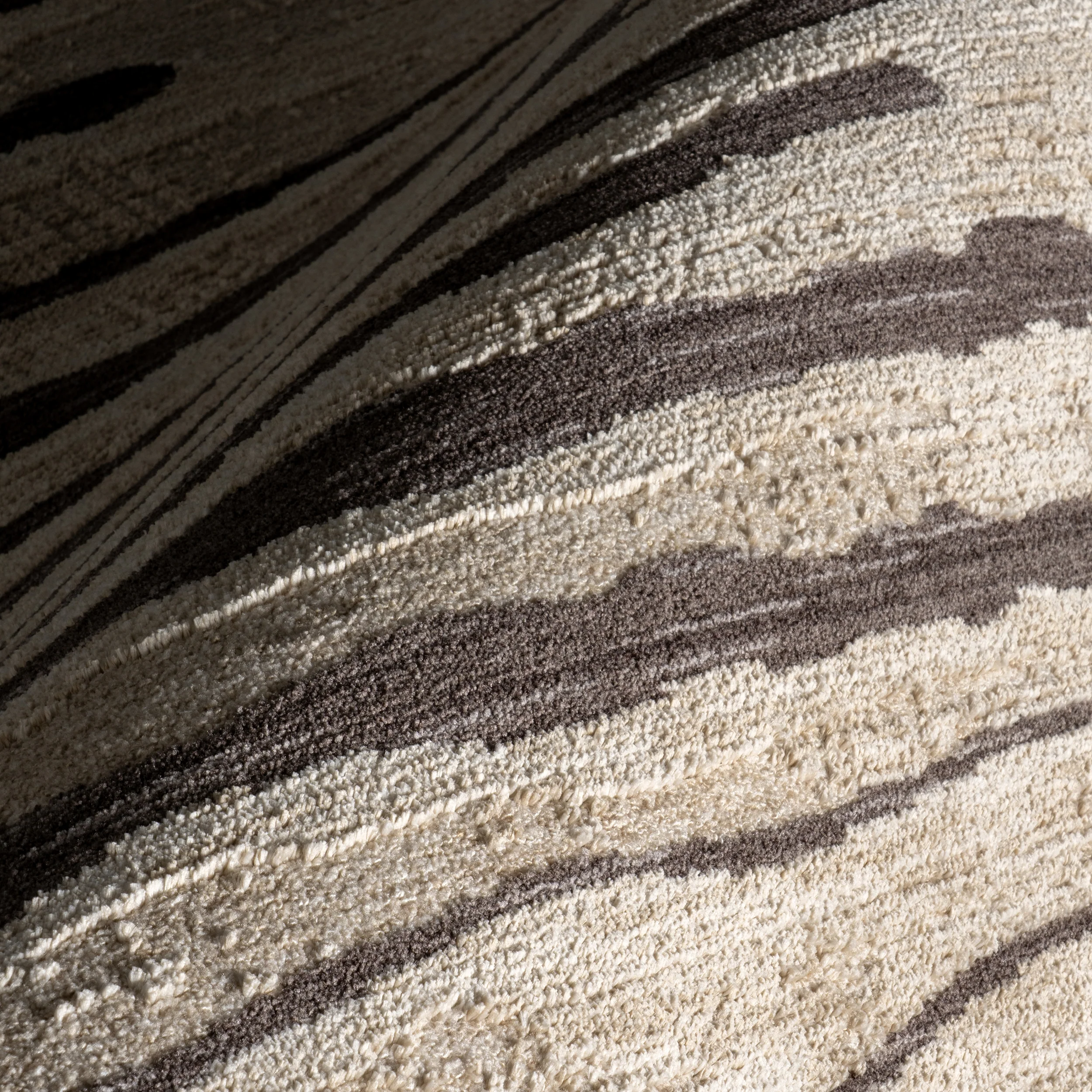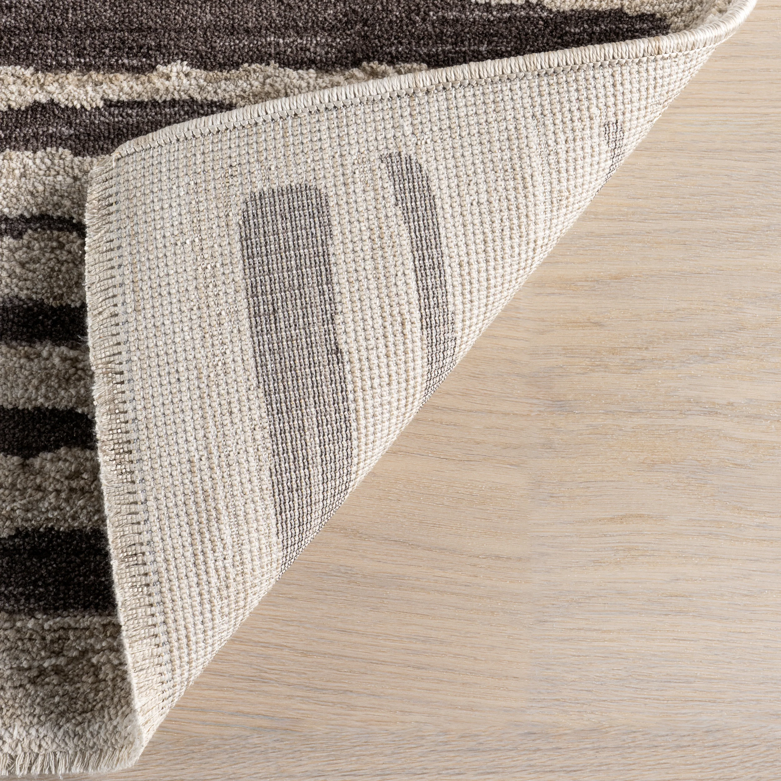 - Современный художественный дизайн: Этот современный ковёр обладает органическими полосами, которые одновременно впечатляют и успокаивают. Игра землистых тонов создает спокойный и художественный акцент для любого современного пространства.