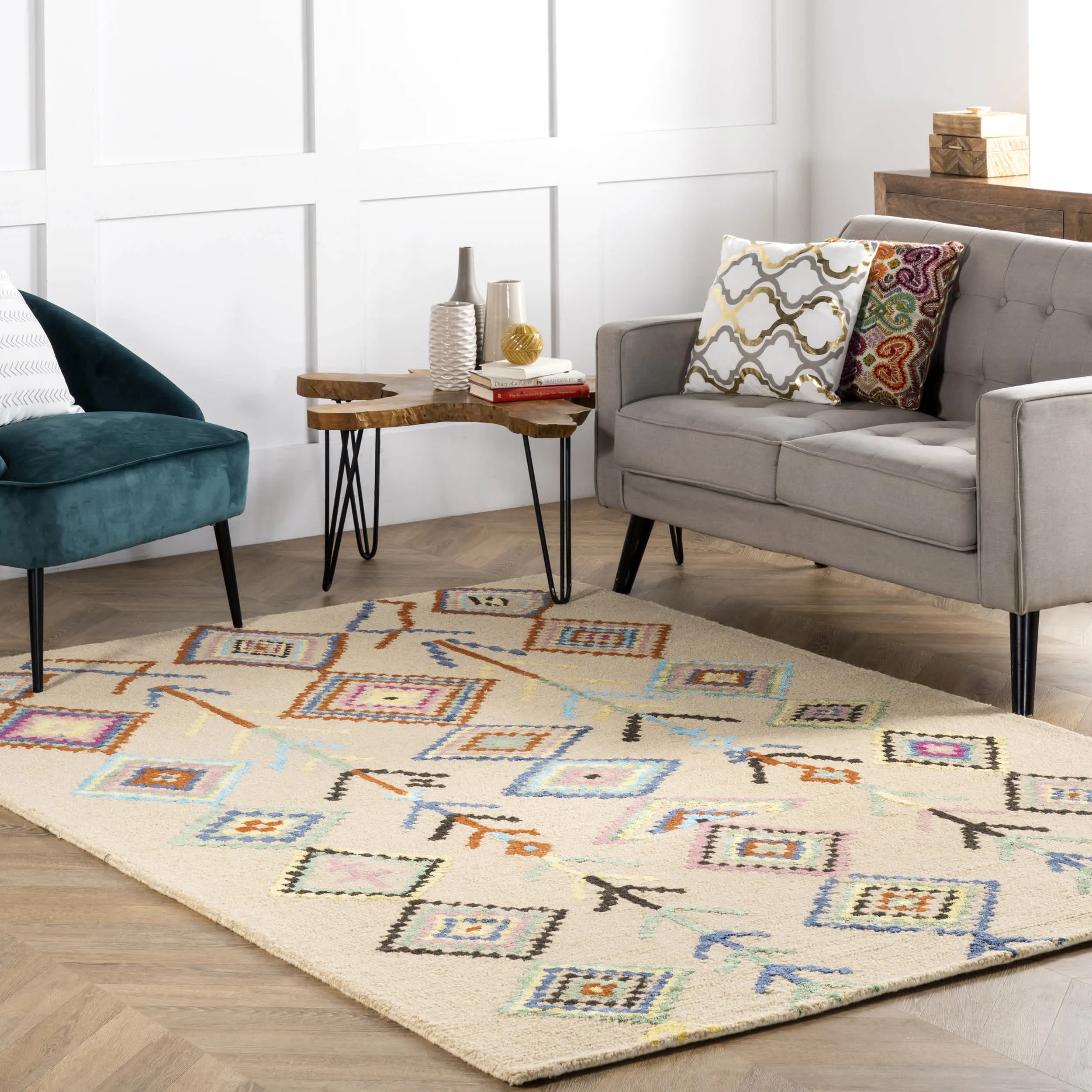 Наполните свои интерьеры завораживающим сочетанием богемного и современного стиля с помощью нашего изысканного ковра с узором в виде марокканского ромба, изготовленного методом ручного ткачества. Созданный из роскошного сочетания шерсти и вискозы, этот ковер предлагает мягкость, которая приносит тепло в ваш дом. Происходя из Индии и изготовленный из прочных материалов, он не только демонстрирует исключительную красоту, но также обеспечивает долговечность. Наслаждайтесь роскошными ощущениями под ногами, которые предоставляет этот великолепный ковер, в то время как его потрясающий узор добавляет необычный шарм вашему домашнему декору.