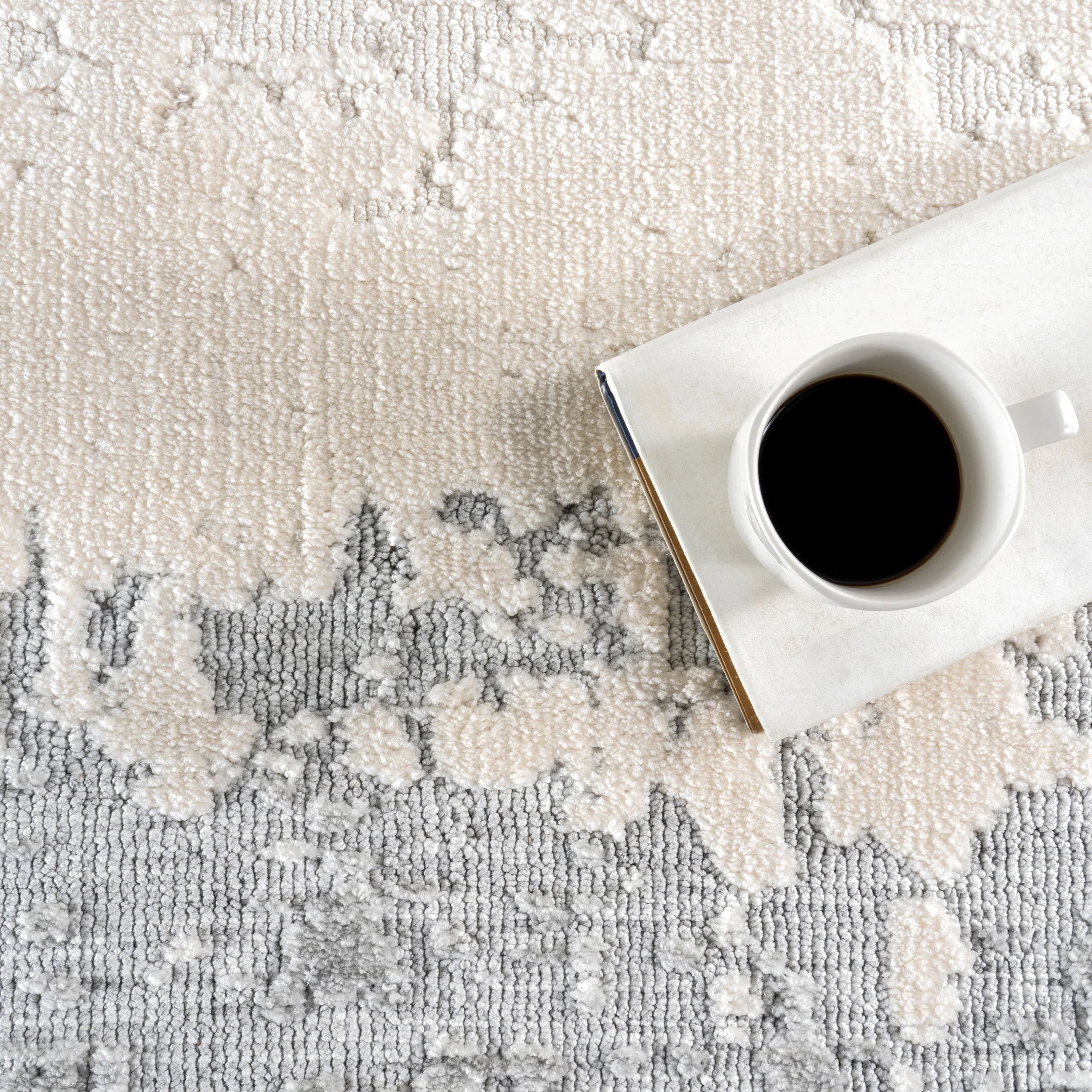 - Классическая элегантность: Этот переходный ковер с бордюром имеет мягкий слоновый цвет в центре, который добавляет светлости и просторности в комнату. Нежная серая кайма обрамляет ковер, обеспечивая утонченный контраст и современную элегантность, при этом гарантируя мягкое, уютное ощущение под ногами.