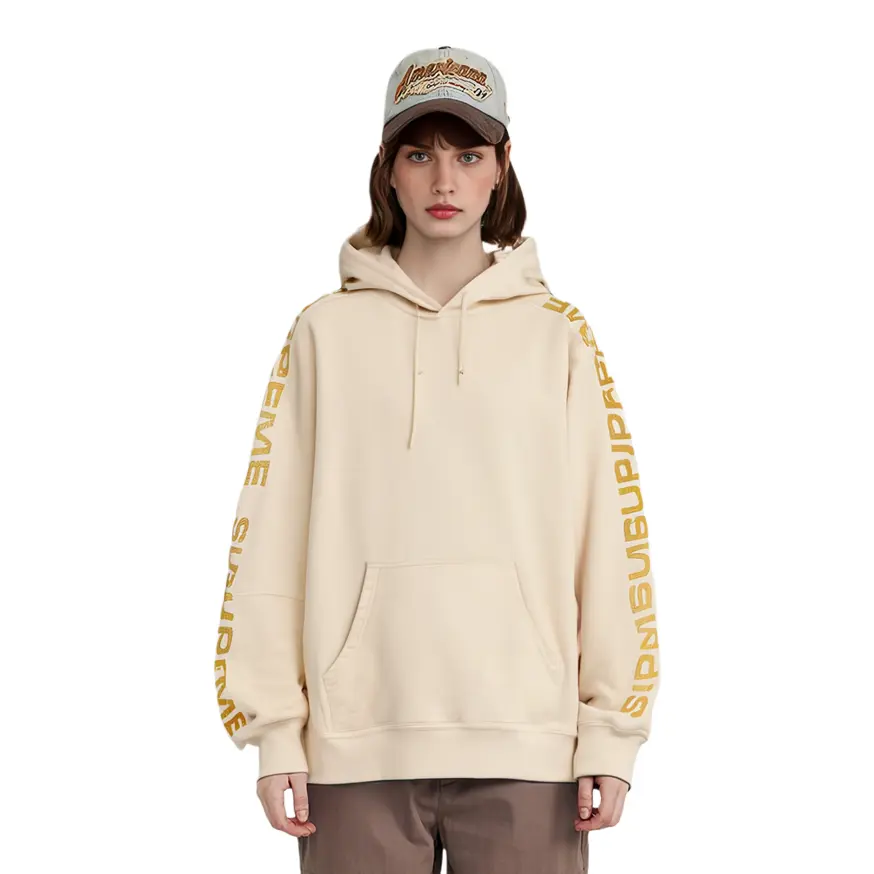 Металлический ребристый худи с капюшоном Supreme, экрю