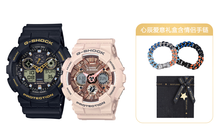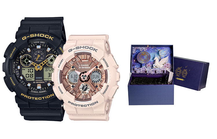 Модель GMA-S120, созданная на основе среднеразмерной версии популярной комбинированной цифро-аналоговой модели GA-120. Металлический циферблат покрыт розовым золотом, а безель и ремешок — розовым, что создаёт непринуждённый, женственный образ.