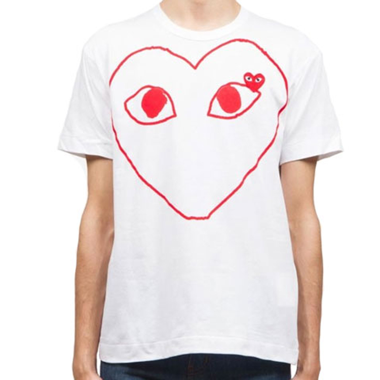 Футболка Comme Des Garcons Play с красным контурным логотипом CDG Play, белая
