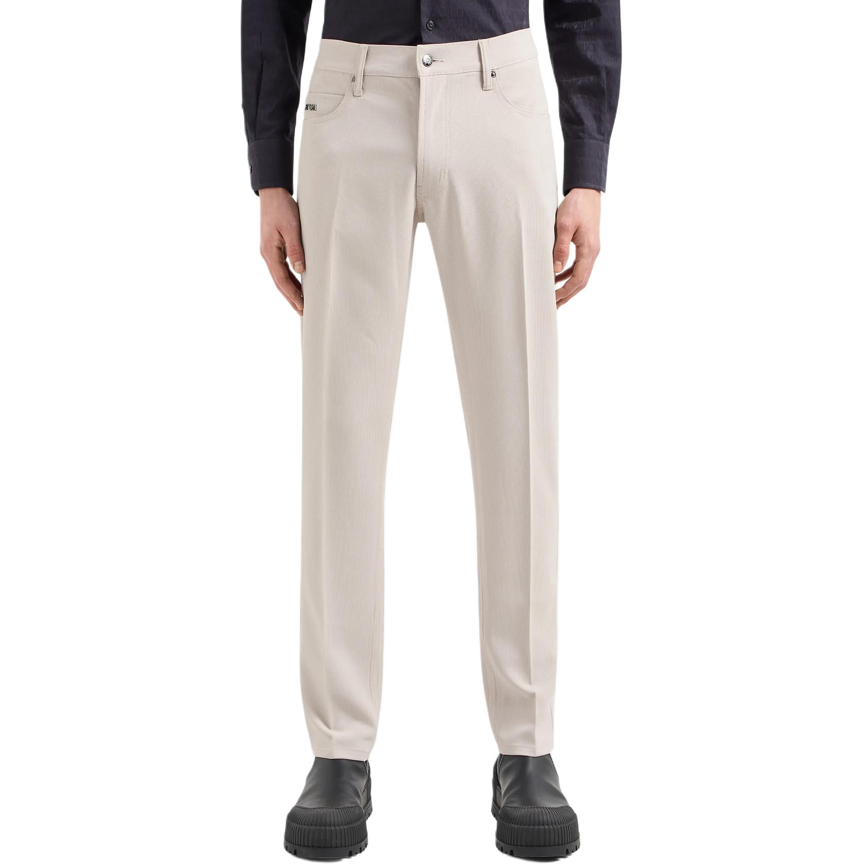 Брюки с логотипом в рубчик EMPORIO ARMANI, экрю