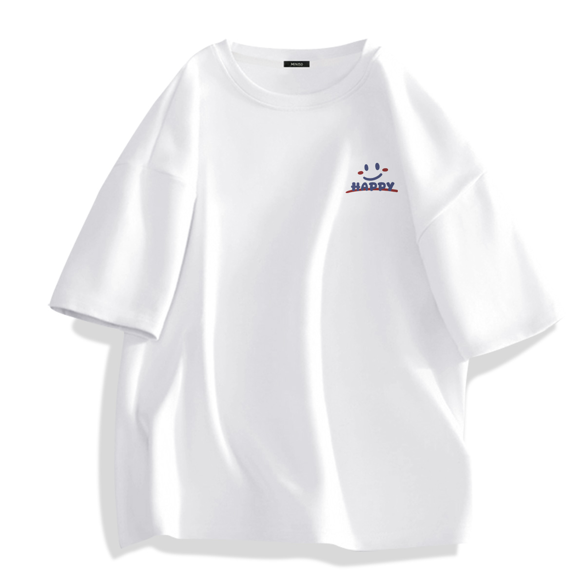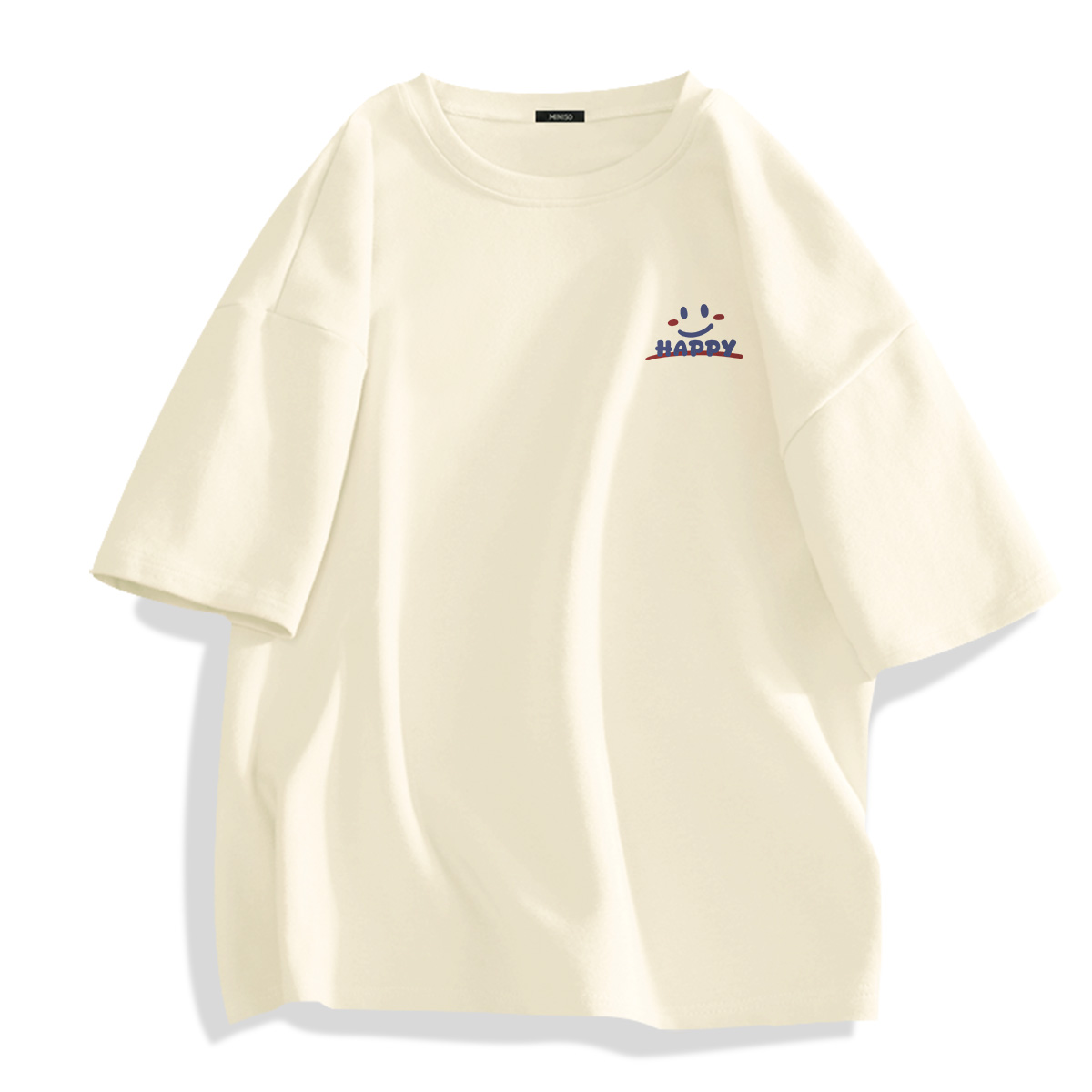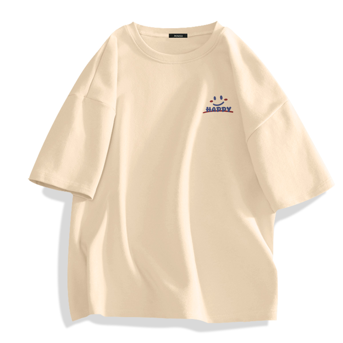 Футболка унисекс MINISO, светло-бежевая (синий сердечок с настроением на груди)