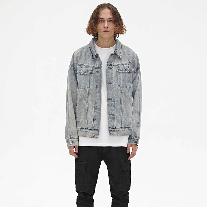 Джинсовая куртка унисекс синяя BONELESS, Жёлтая грязь