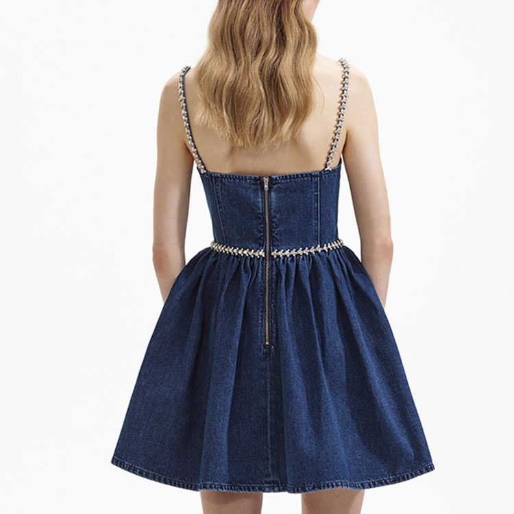 Селфи в джинсовом мини-платье с бантом Self-portrait, синий деним 50 243₽