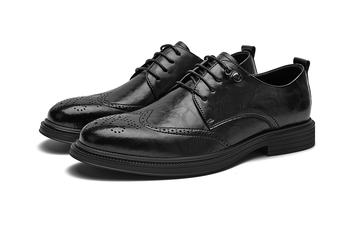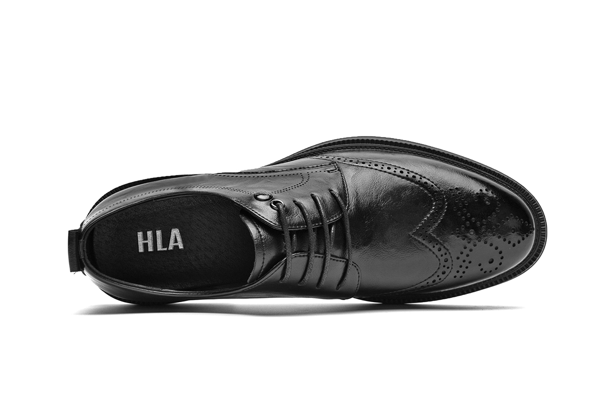 Мужские туфли HLA черные на низком каблуке с коричневой флисовой подкладкой 5 498₽