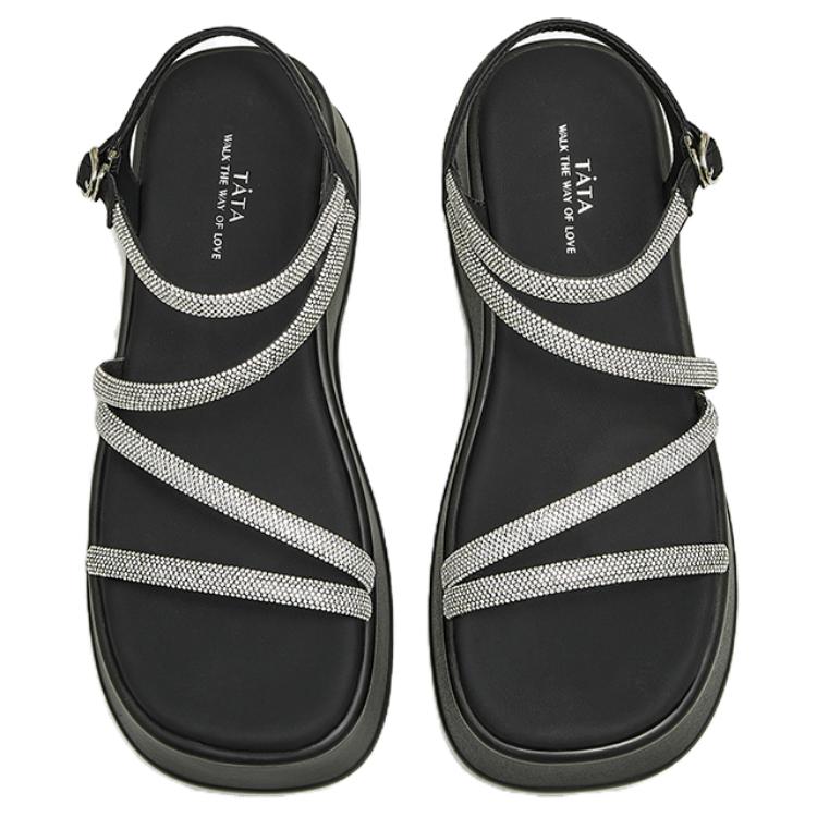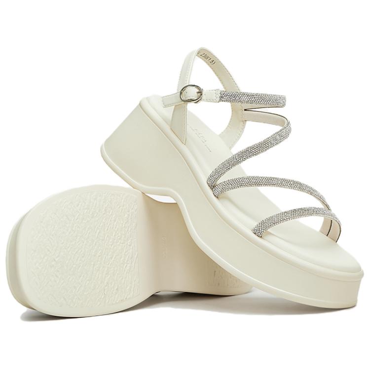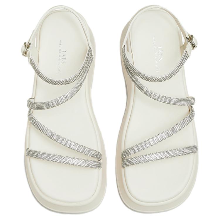 Женские сандалии на одной бляшке TATA, цвет экрю/серебро