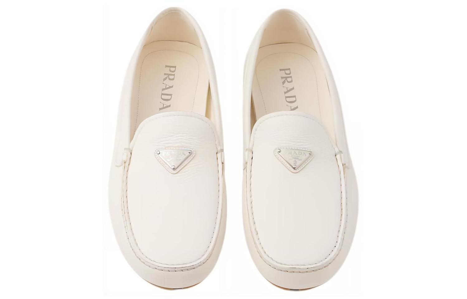 Кожаные перчатки-водители с логотипом-пластиной PRADA, белые