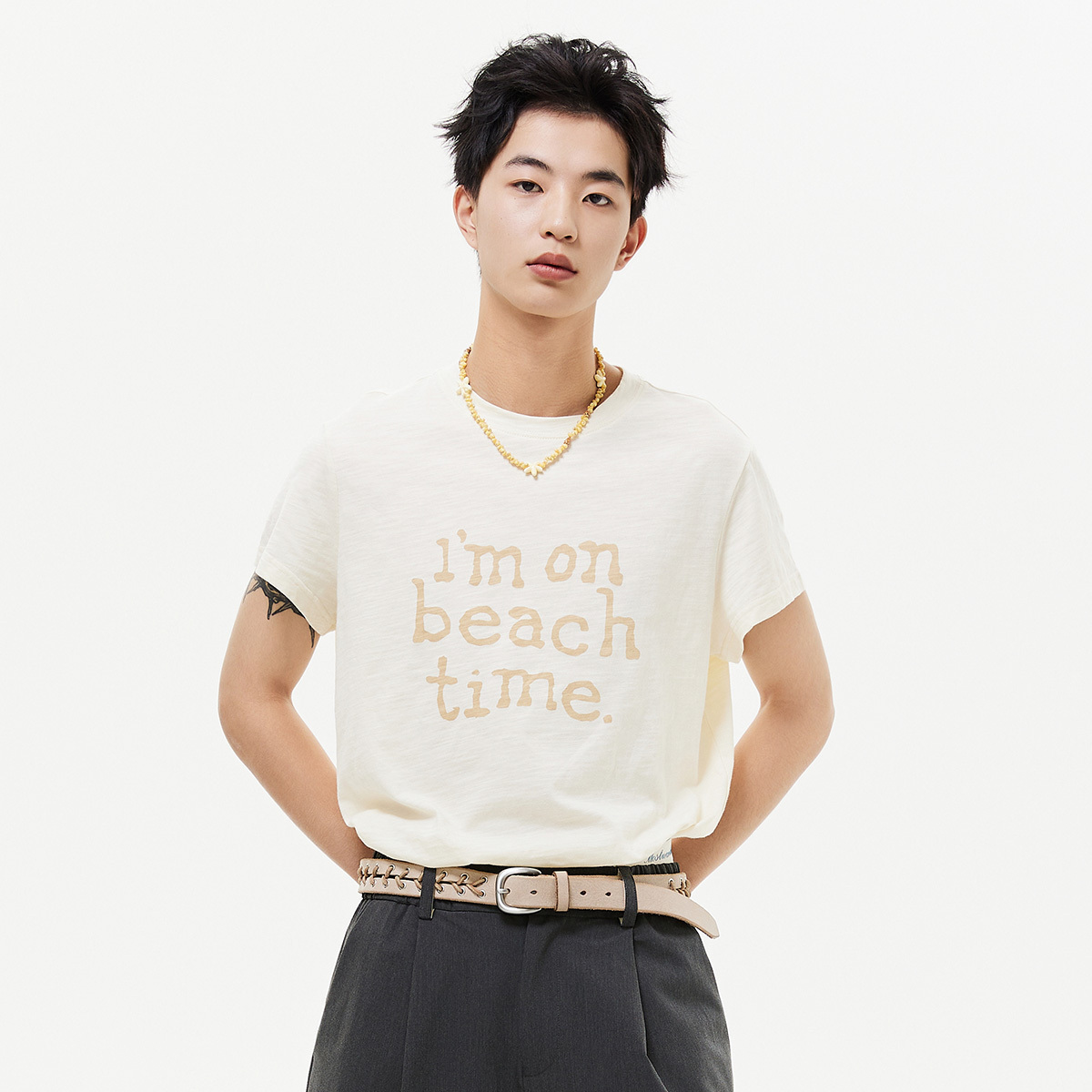 Вдохновение и самовыражение в дизайне: Летняя праздничная коллекция MOSTWANTEDLAB продолжает развивать дизайн популярной весенней футболки. Силуэт вдохновлен традиционной футболкой с круглым вырезом и короткими рукавами, а длина и обхват были скорректированы для облегающей посадки. Слегка укороченная длина вытягивает фигуру, а рукава имеют укороченную, слегка загнутую вверх треугольную форму, акцентируя внимание на самой тонкой части руки, эффективно скрывая излишки на стыке плеча и руки и подчеркивая тонкие, изящные линии руки. Слегка свободный крой для мужчин создает непринужденную, свежую пляжную атмосферу. Ткань — легкий, дышащий хлопок с текстурой 170 г. Доступная в четырех цветовых вариантах, эта освежающая и солнечная цветовая комбинация универсальна и многофункциональна, идеально подходит как для отпуска, так и для повседневной носки.