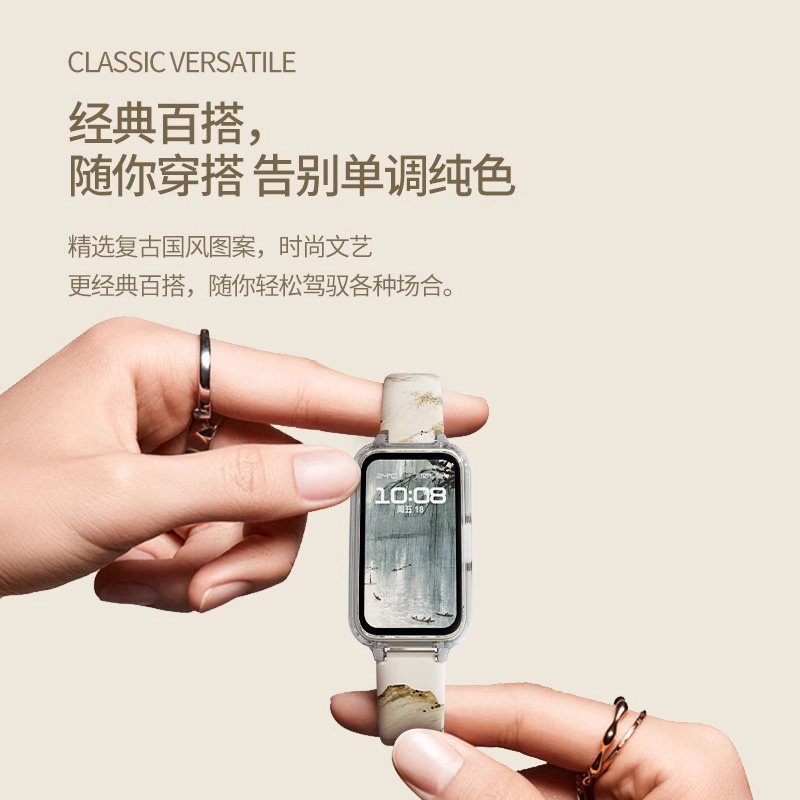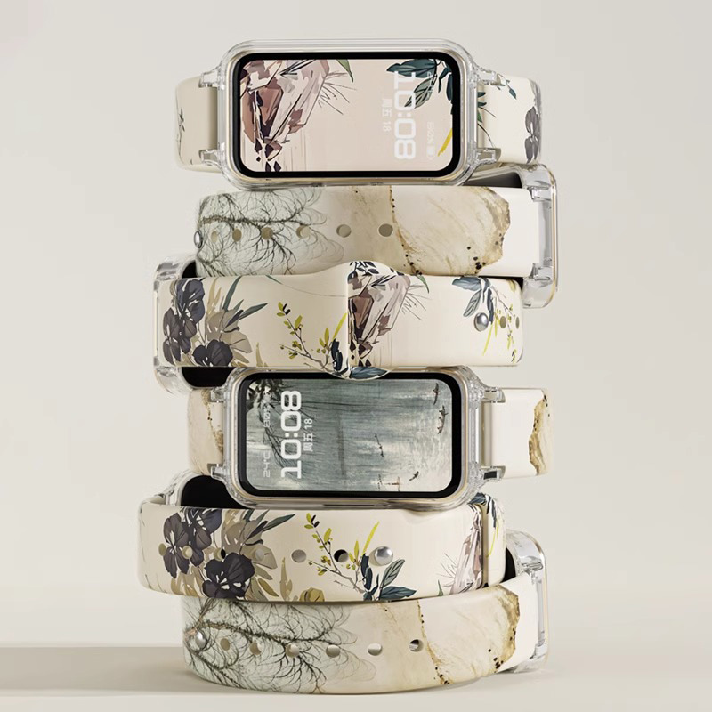 Ремешок Huawei Совместимость Силиконовый Материал 135-200мм IBOANN, Национальный стиль ива [ремень + прозрачный защитный чехол] 1 405₽