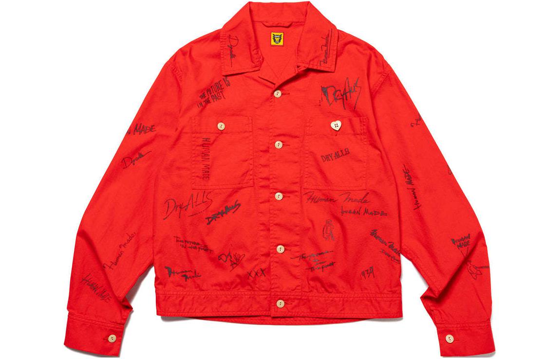 Хлопковая рубашка-куртка с принтом HUMAN MADE, светло-умбра 46 599₽