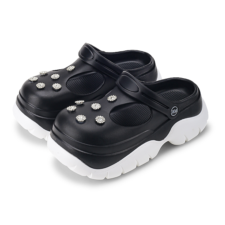 Кломпы женские XMISTUO, 2535-14 черные, с кристальным цветком