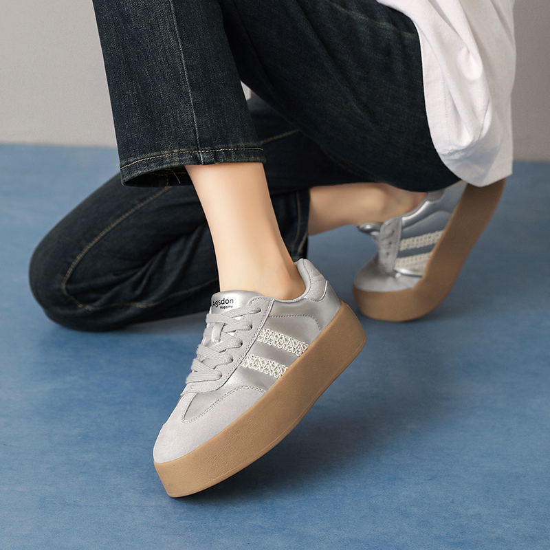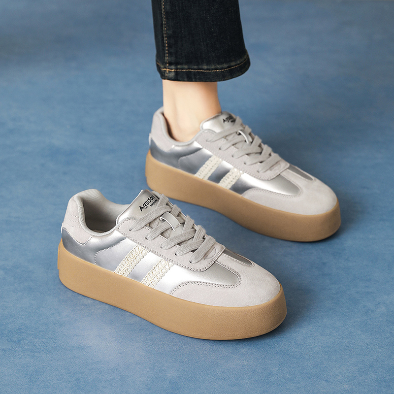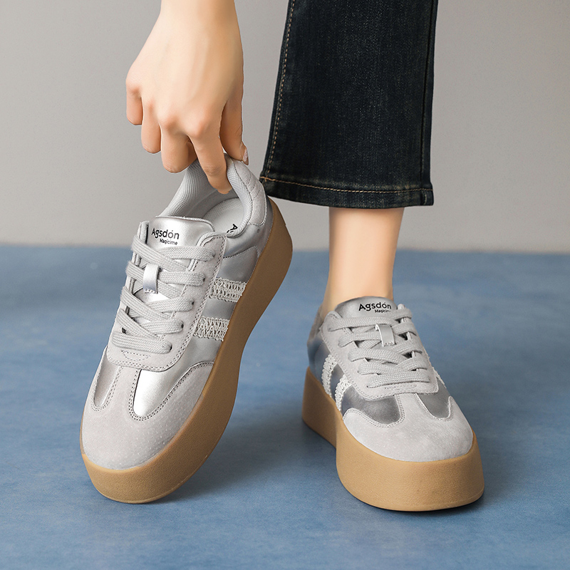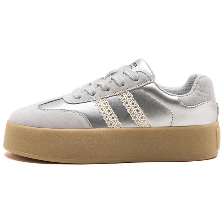 Низкие женские скейтбордские кроссовки AGSDON серебристые, бежево-черные 2 730₽