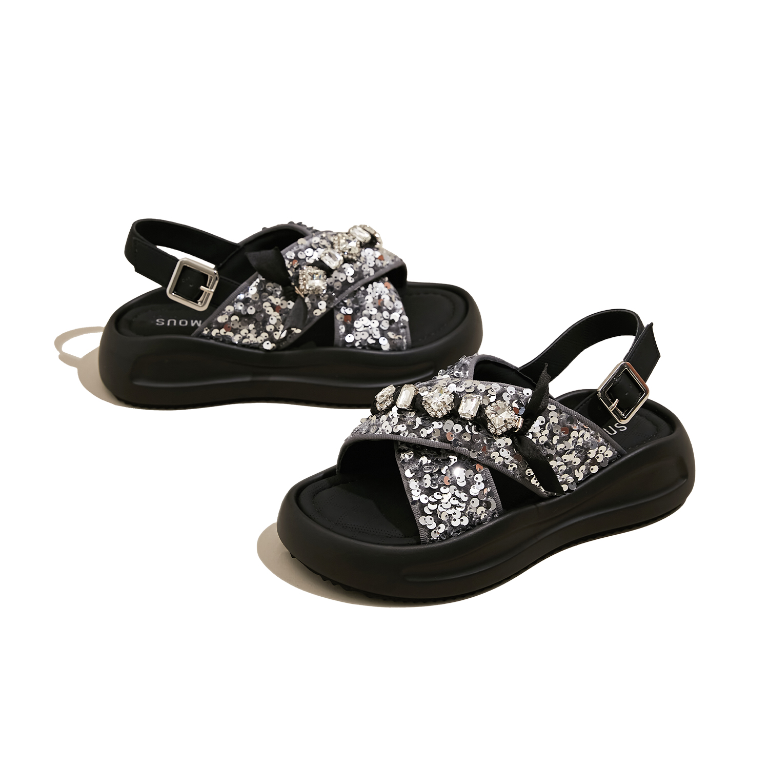 Сандалии с ремешками на каблуке 4 см Women's SNOWELF, серебристые 5 684₽