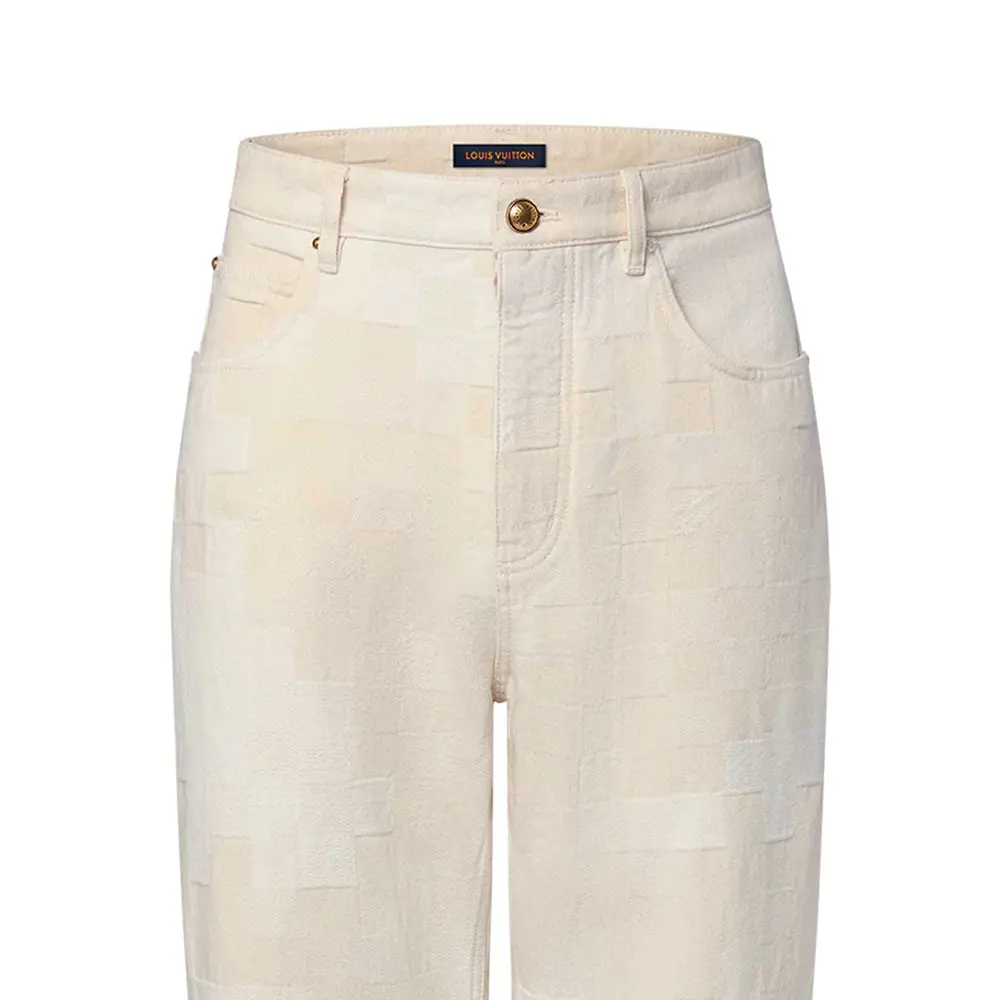 Луи Виттон Демофлейдж Жаккардовые Джинсовые Скейтерские Штаны Экрю