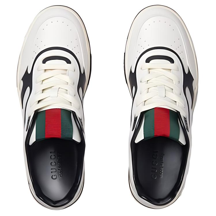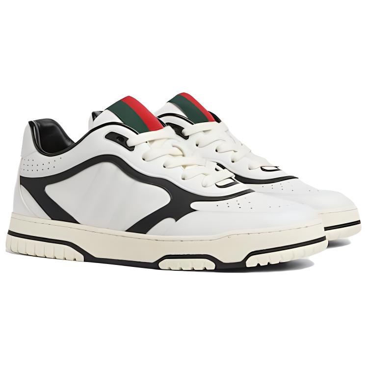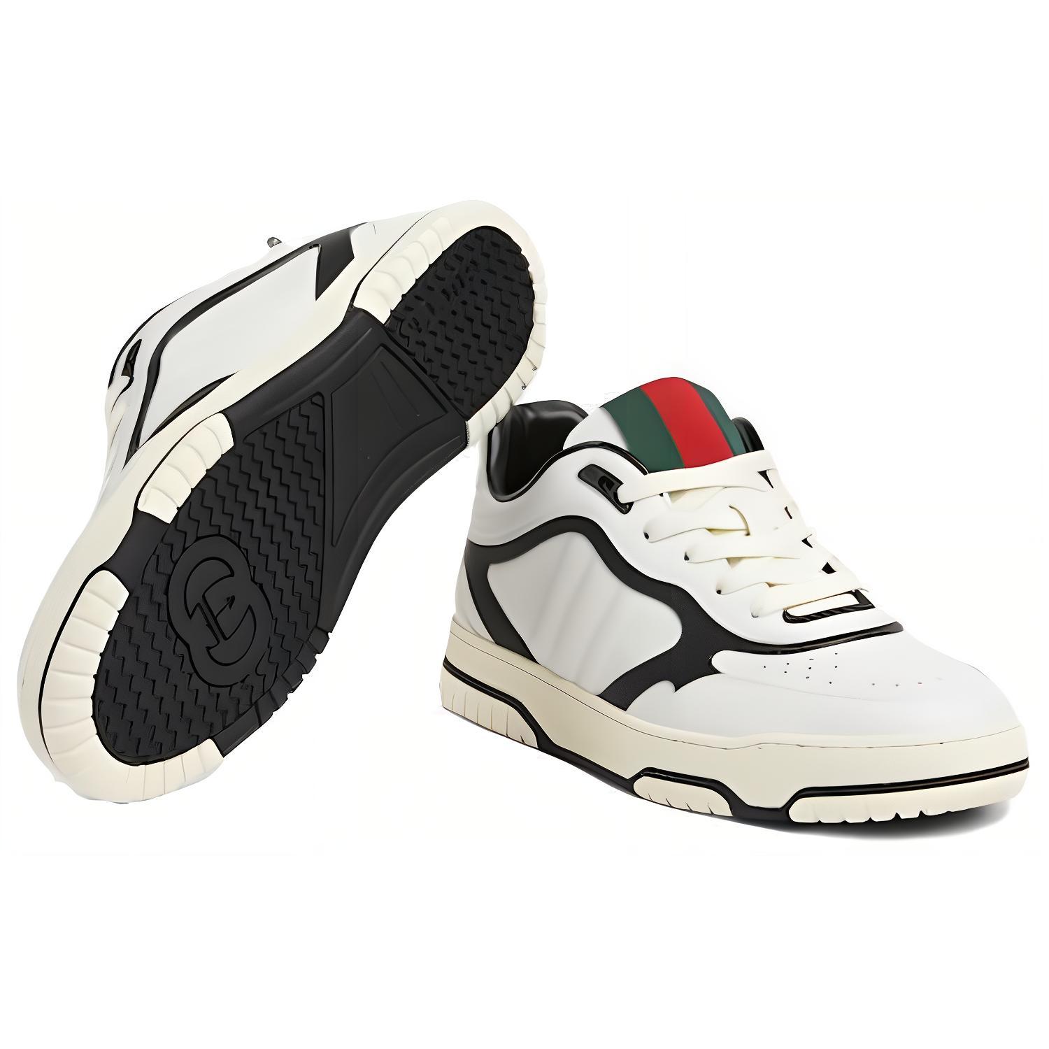 Современная интерпретация культовых полосок Gucci. Эти кроссовки сочетают в себе белую кожу и чёрную отделку. Эти новые кроссовки отличаются фирменными деталями, которые делают их узнаваемыми.