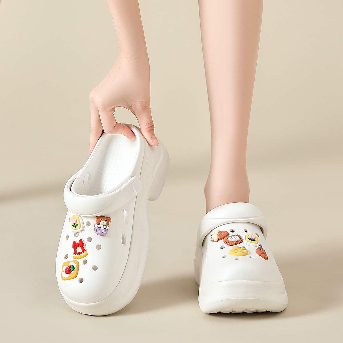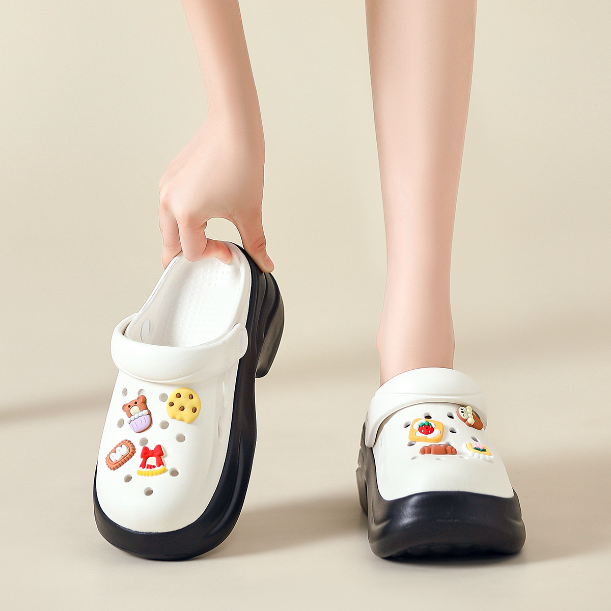 Клогги женские ZHR, белый черный