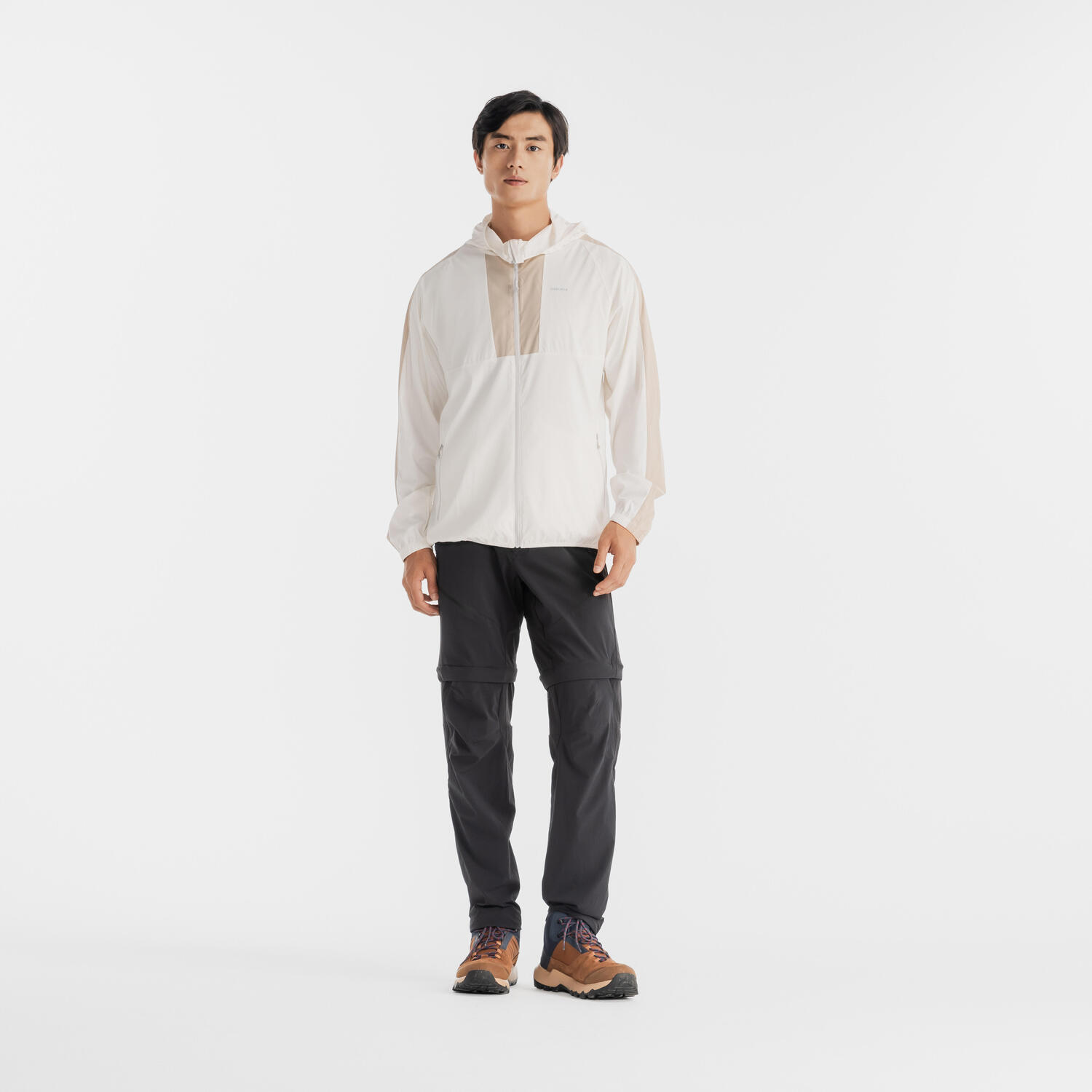 Куртка мужская светлая бело-серая DECATHLON, светлая бело-лаймовая серая