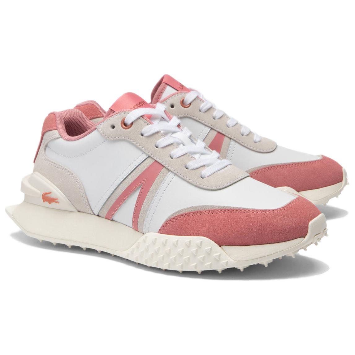 Женские низкие кеды L-spin бело-розовые LACOSTE
