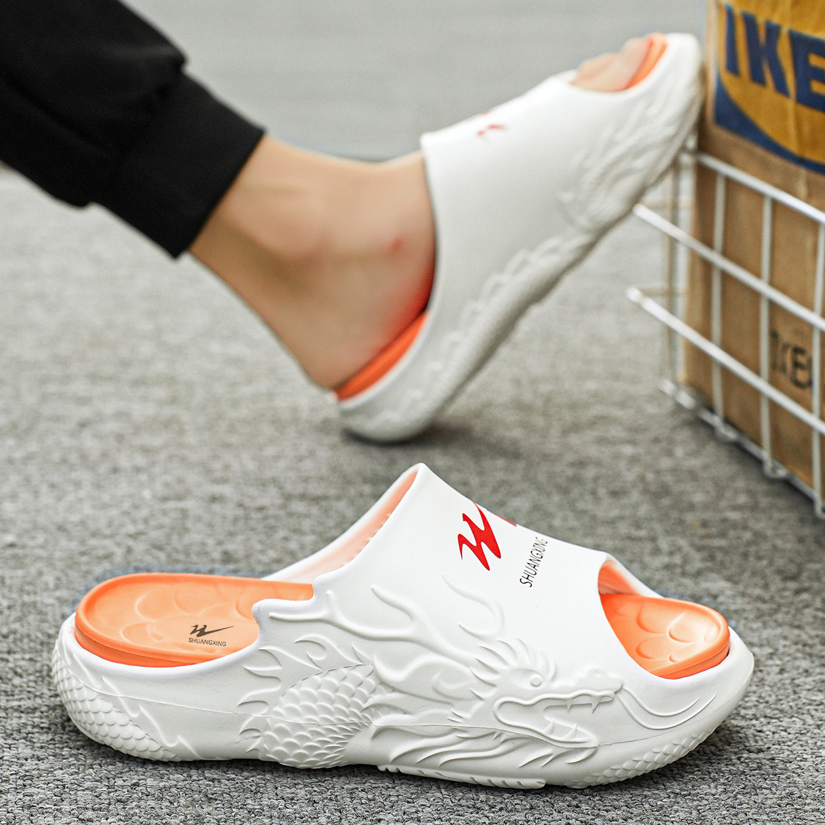 Мужские белые противоскользящие шлепанцы Binary