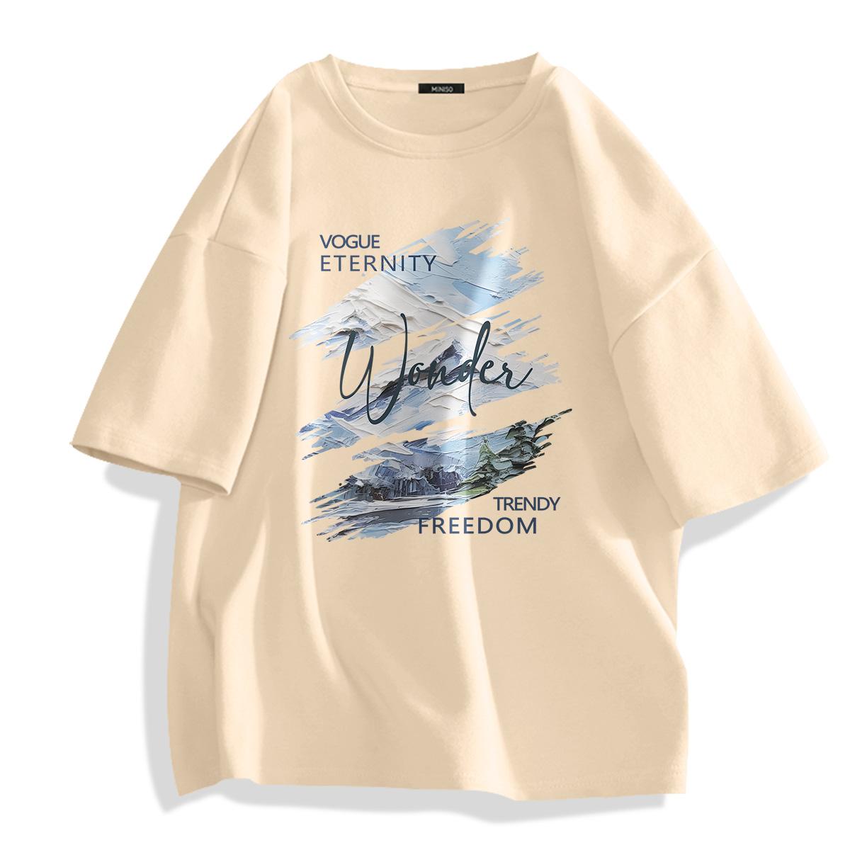 Футболка унисекс MINISO, [2 шт] светло-бежевый и черный