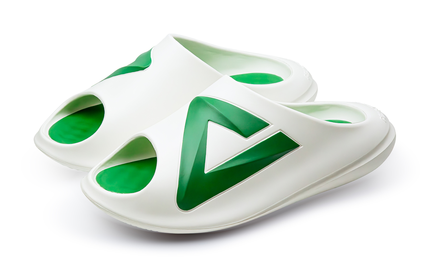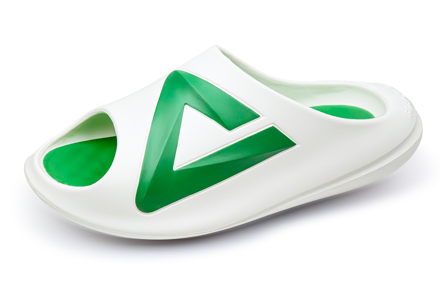 Спортивные тапочки унисекс бело-зеленые PEAK, экрю/зеленый