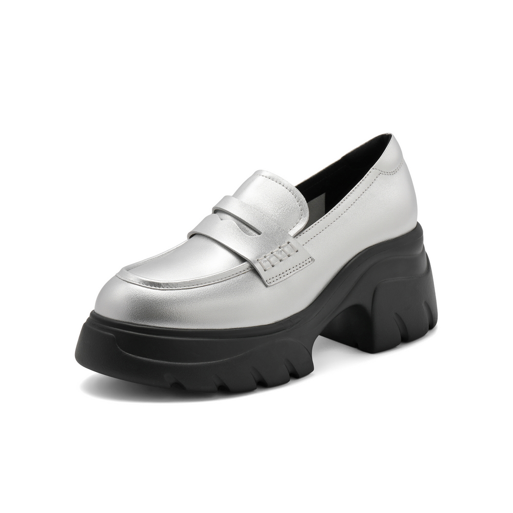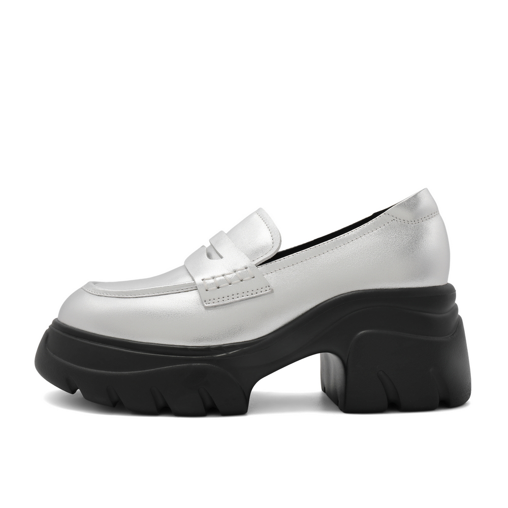 Лоферы женские черные экрю 7 см BELLE, серебристые