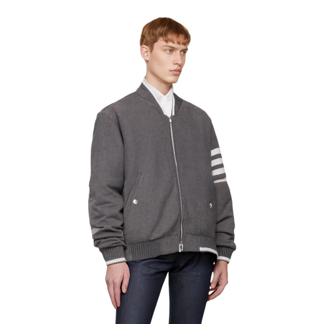Футболка с четырьмя полосами и молнией THOM BROWNE, серая 141 626₽
