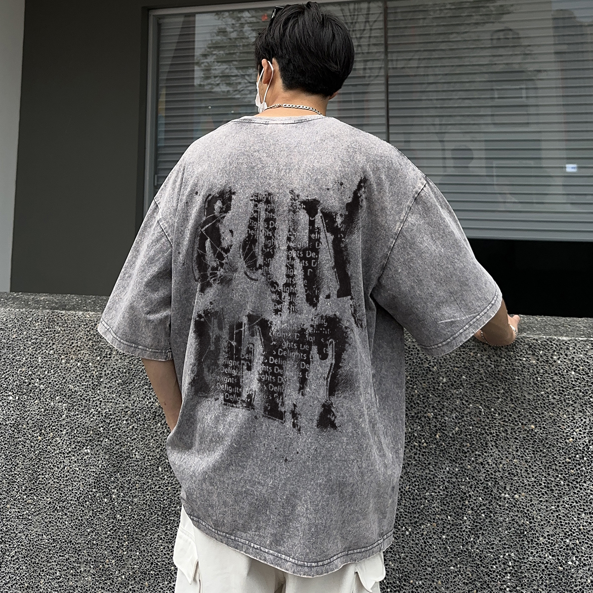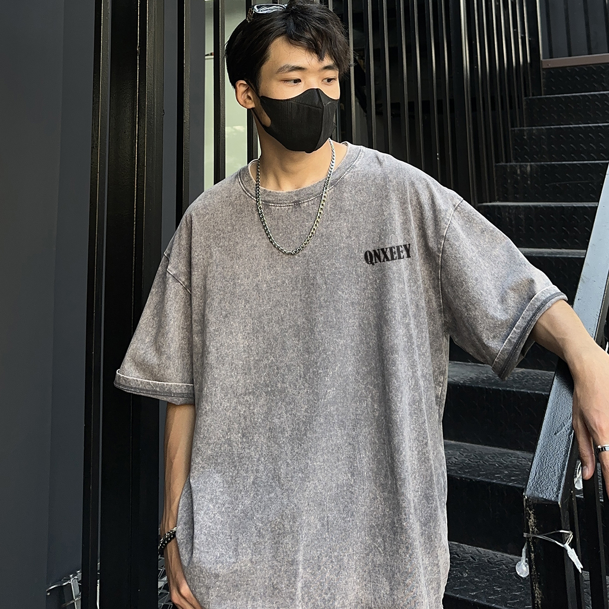 Футболка унисекс Qnxeey, постиранный серый [В комплекте один фирменный шорт случайной модели]