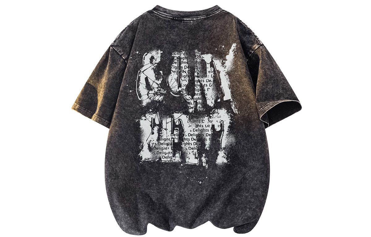 Футболка унисекс Qnxeey, постиранный черный [В комплекте одни шорты случайного бренда]