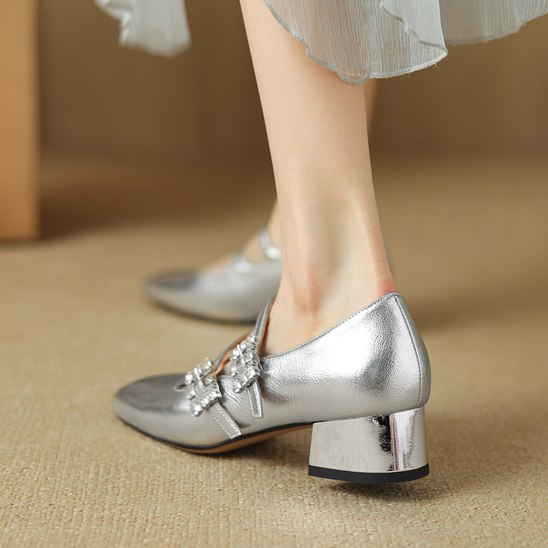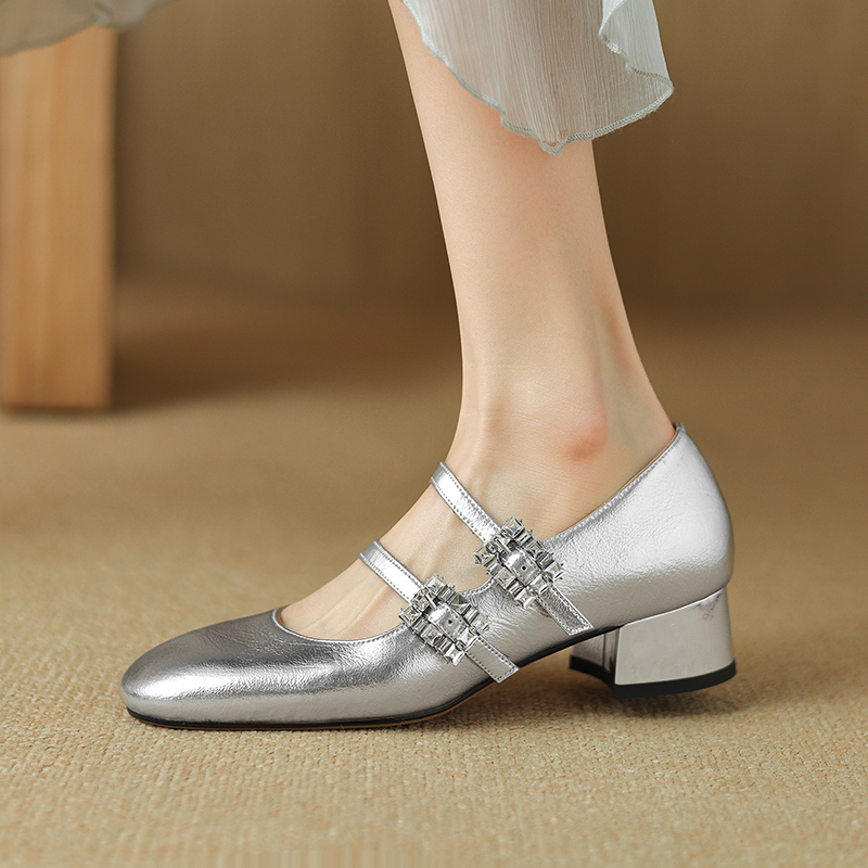 Повседневные туфли на каблуке 3,5 см Echo&yolo, серебристый 8 230₽