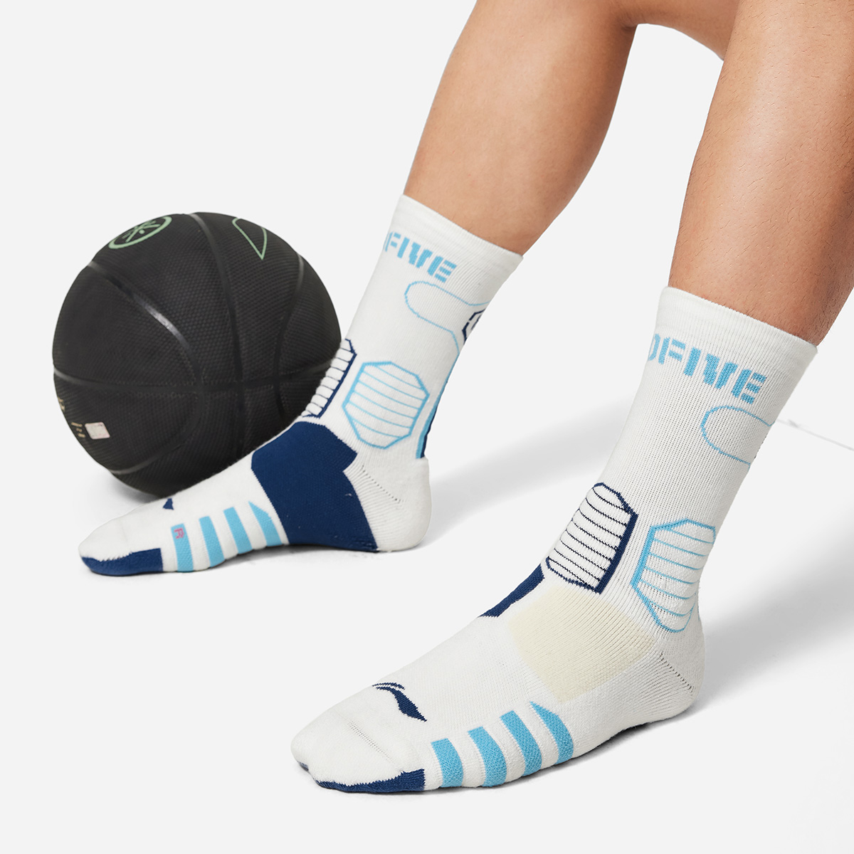 Лининг Badfive Баскетбольные Носки Унисекс 1 Пара Белый/Голубая Мечта/Бирюзовый