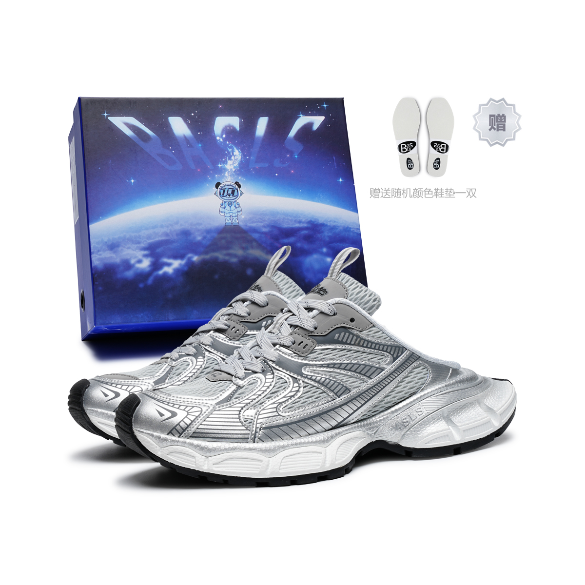 Баше Серия Мюлы Дышащие Высотные Низкие Массивные Кроссовки Унисекс BASLS, Серебряный Дракон