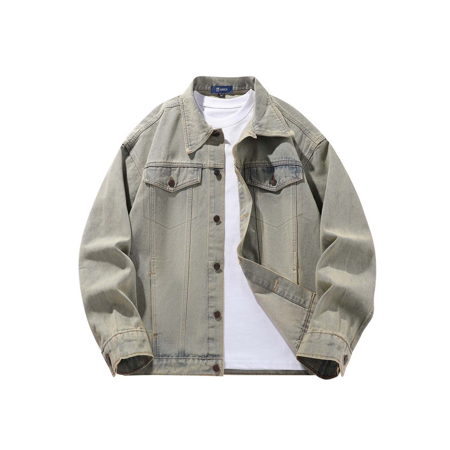Джинсовая куртка унисекс черная FCB ARCELONA, лазурная