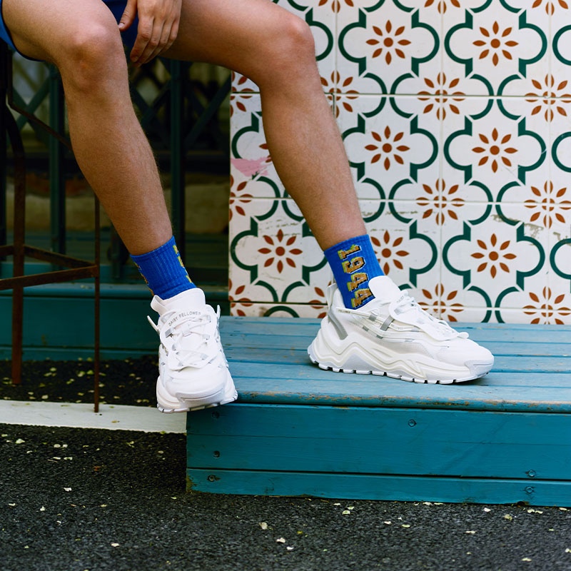 Сращивание материалов создает уникальную визуальную многослойность с индивидуальным дизайном шнурков. Плотно сплетенные шнурки эластичны, устойчивы к растяжению и не развязываются. Трёхмерная толстая подошва увеличивает высоту и является универсальной. Ремешок на конце ботинка позволяет легко надевать и снимать его, экономя время и силы. Поверхность ботинка украшена индивидуальными элементами, а вогнутая и выпуклая текстура также подчёркивает многослойность обуви, что делает её модной и стильной. Внутренняя часть верха обтянута кожей для лучшего облегания и комфорта. Неровная текстура подошвы также повышает противоскользящие и износостойкие свойства обуви.