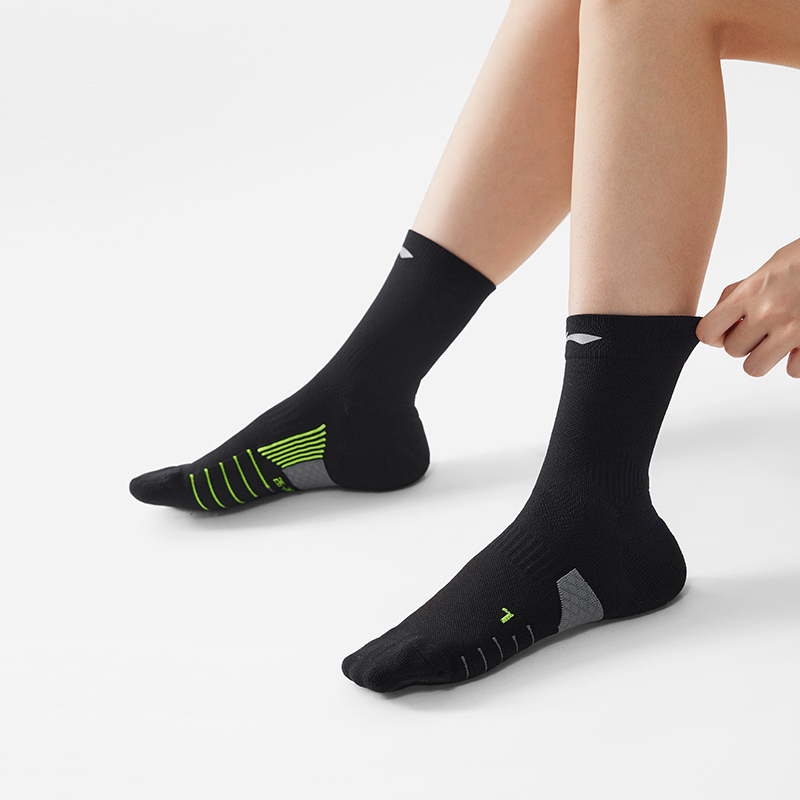 LiNing Running Collection Носки для бега Mid Calf Унисекс Черные, 1 пара (Черный)