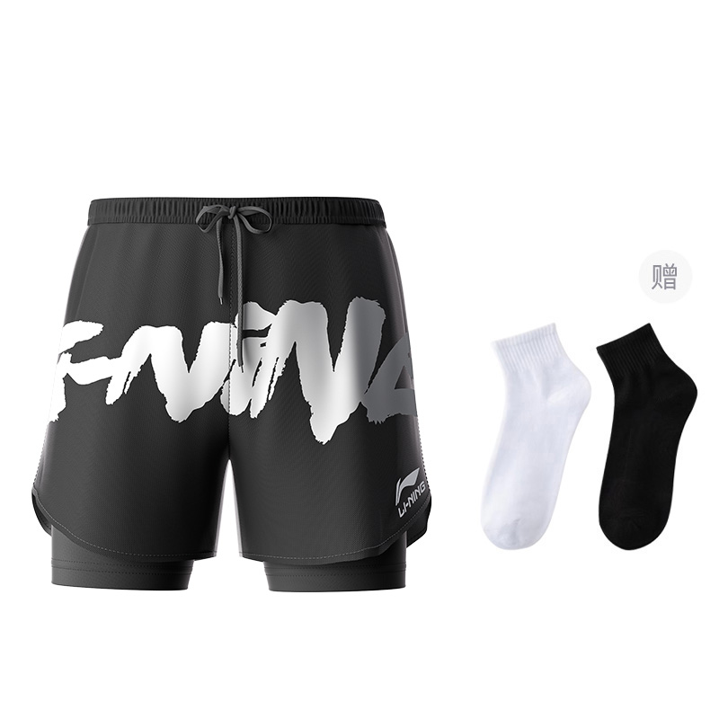 ЛиНинг Спортивные шорты мужские черные, Черные штаны + Спортивный напульсник (случайный цвет в подарок)