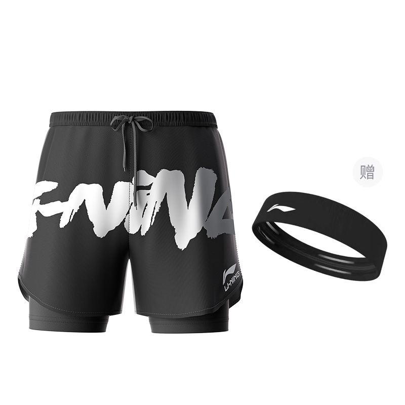 ЛиНинг Спортивные шорты Мужские Черные, Черные Шорты+Спортивная повязка на голову (Черная)