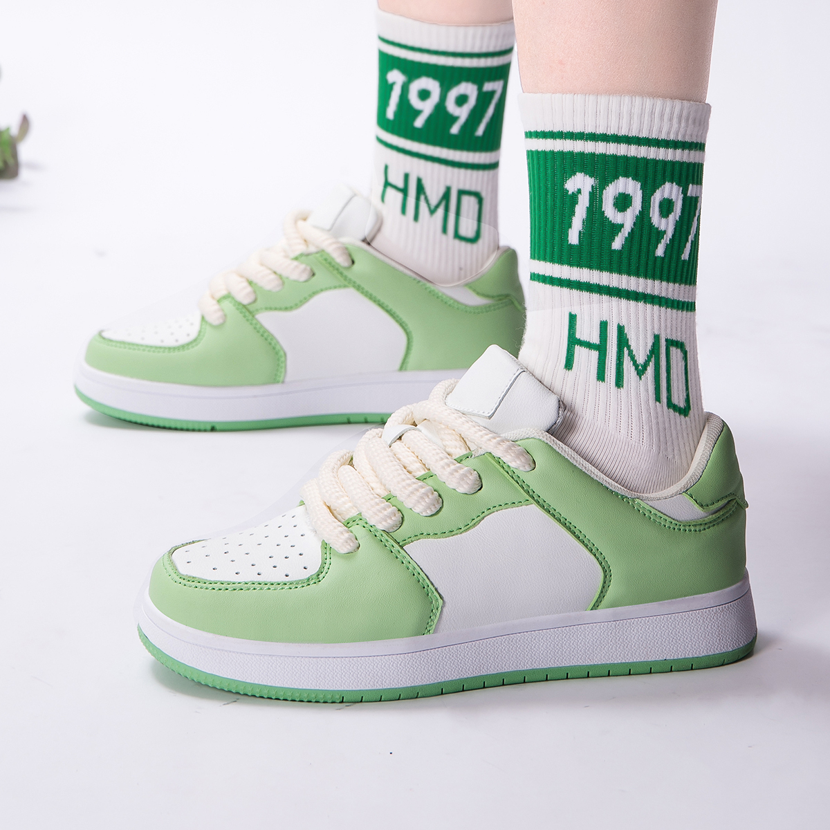 Кроссовки для скейтбординга унисекс бело-зеленые Medd, бело-красные