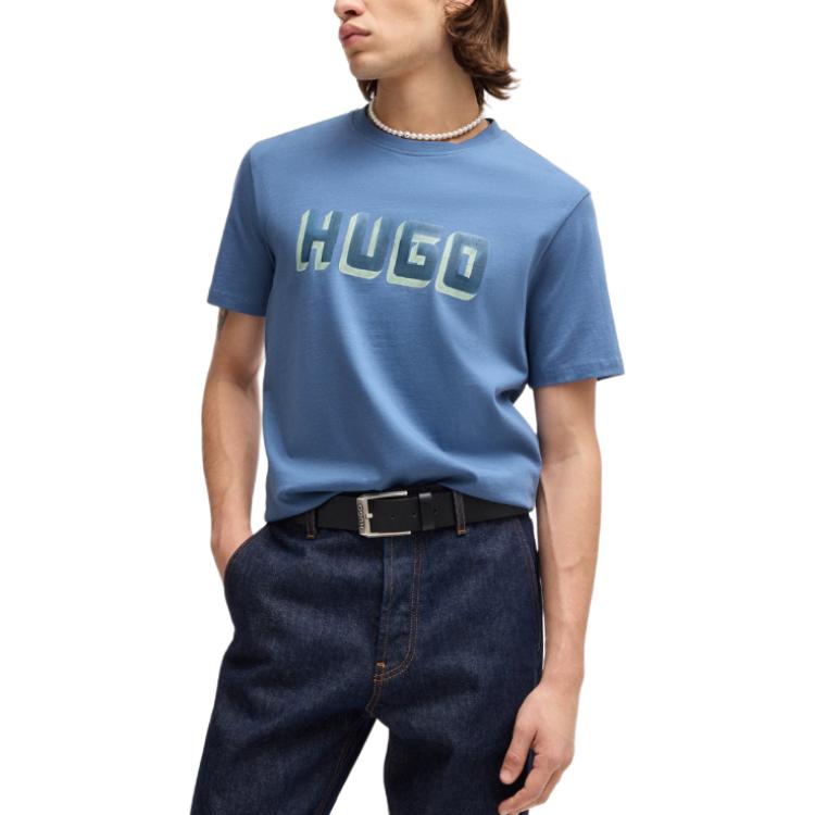 Футболка из хлопка с логотипом HUGO BOSS, синяя