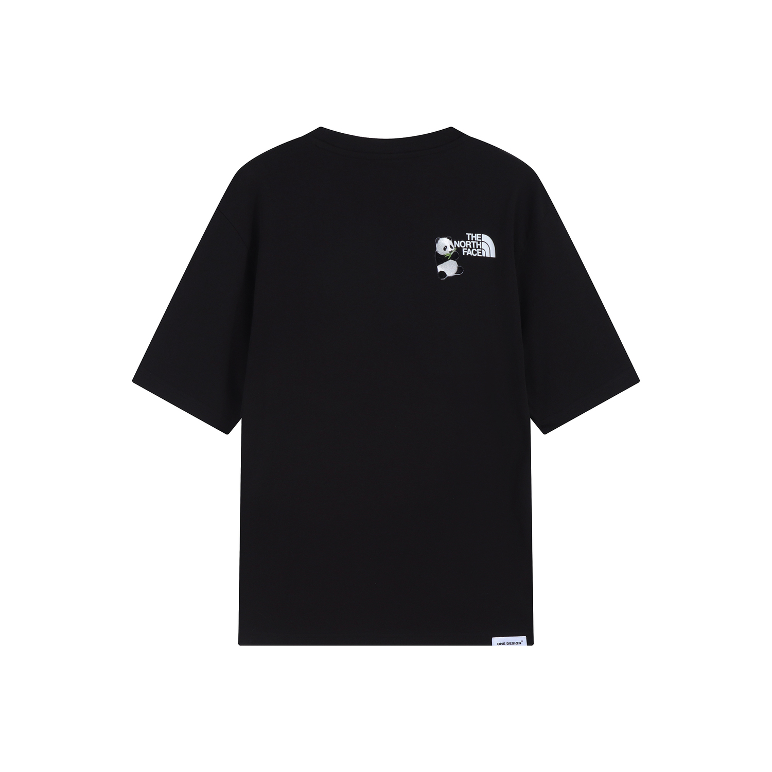 В этой индивидуальной версии одежды используется оригинальная однотонная футболка с короткими рукавами и надписью THE NORTH FACE, черная модель с плечами.