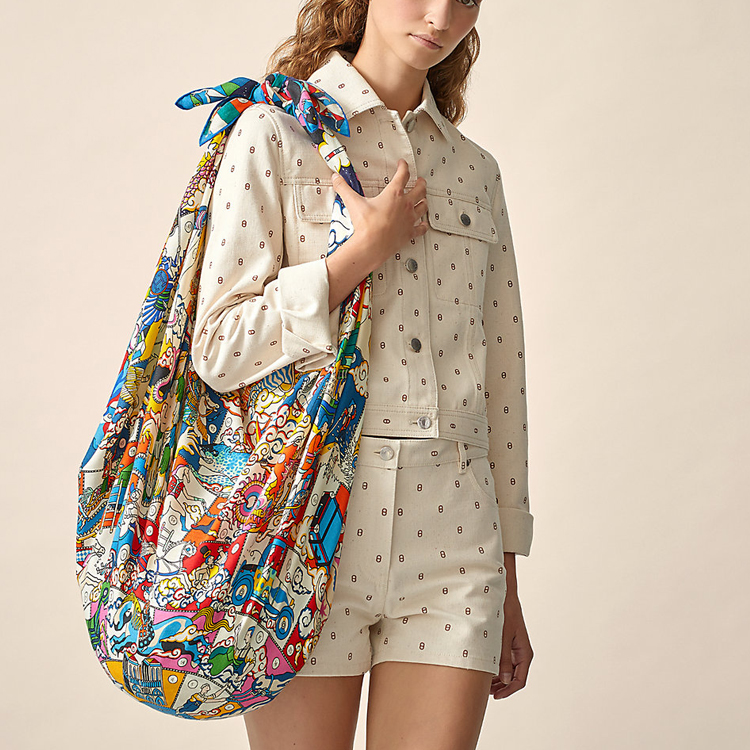 Шаль унисекс синяя желтая/разноцветная HERMES