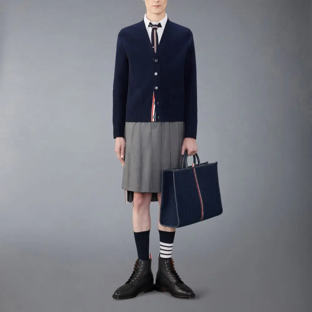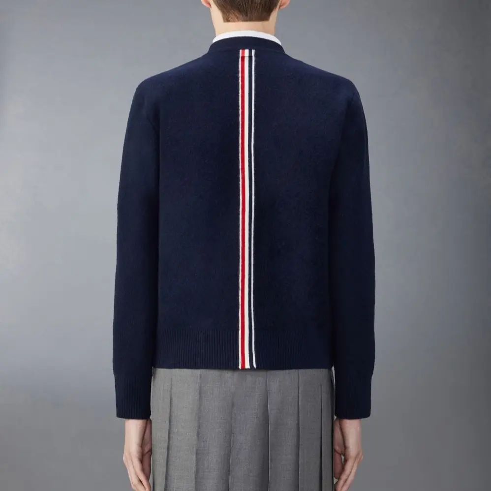 Стираный вязаный кардиган с отделкой стежком THOM BROWNE, Морской синий