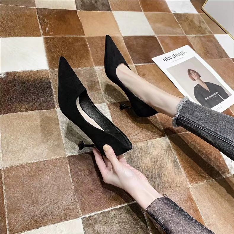 Туфли на высоком каблуке Xingdiman, женские, черные, в подарочной упаковке, замша (высота каблука 8 см) 2 204₽