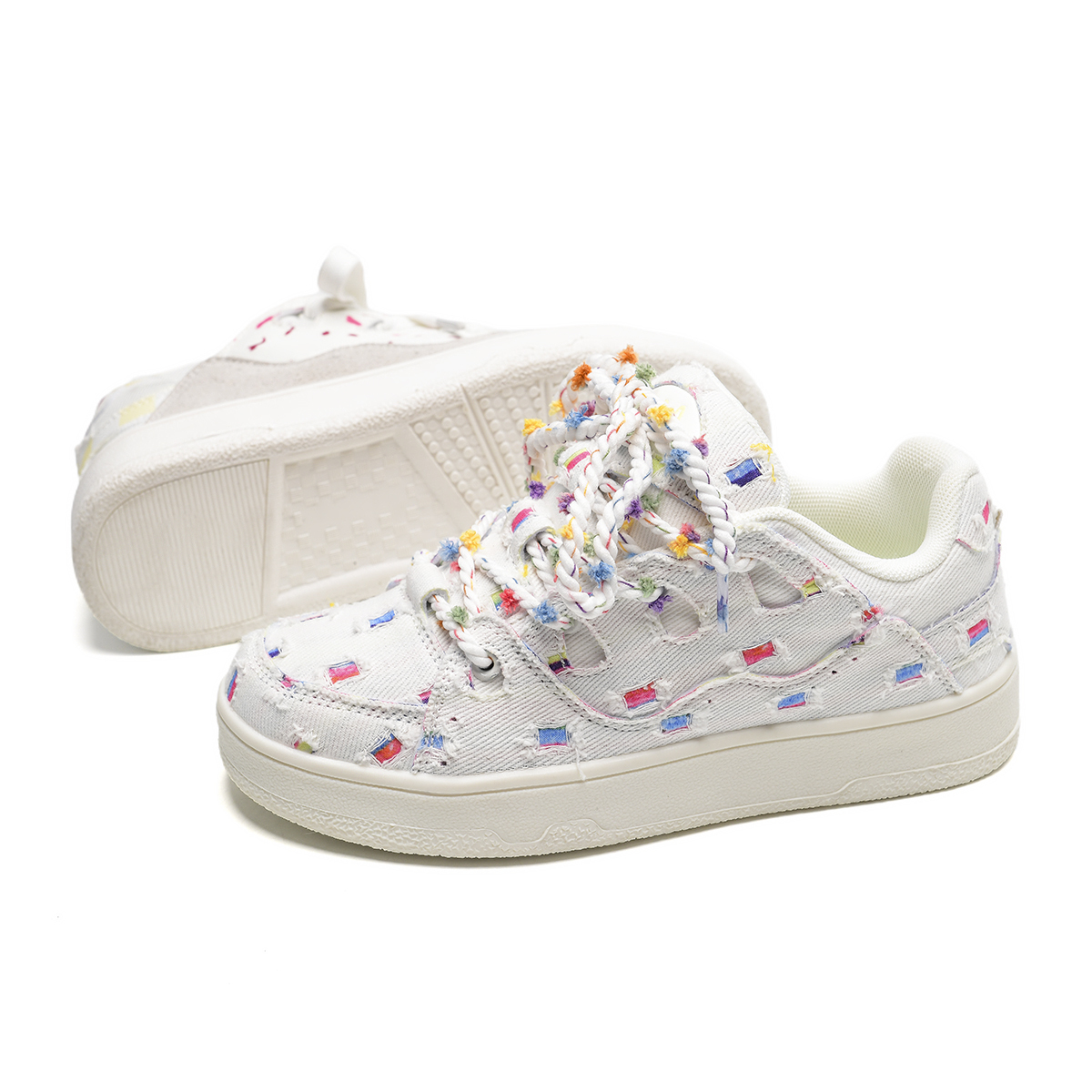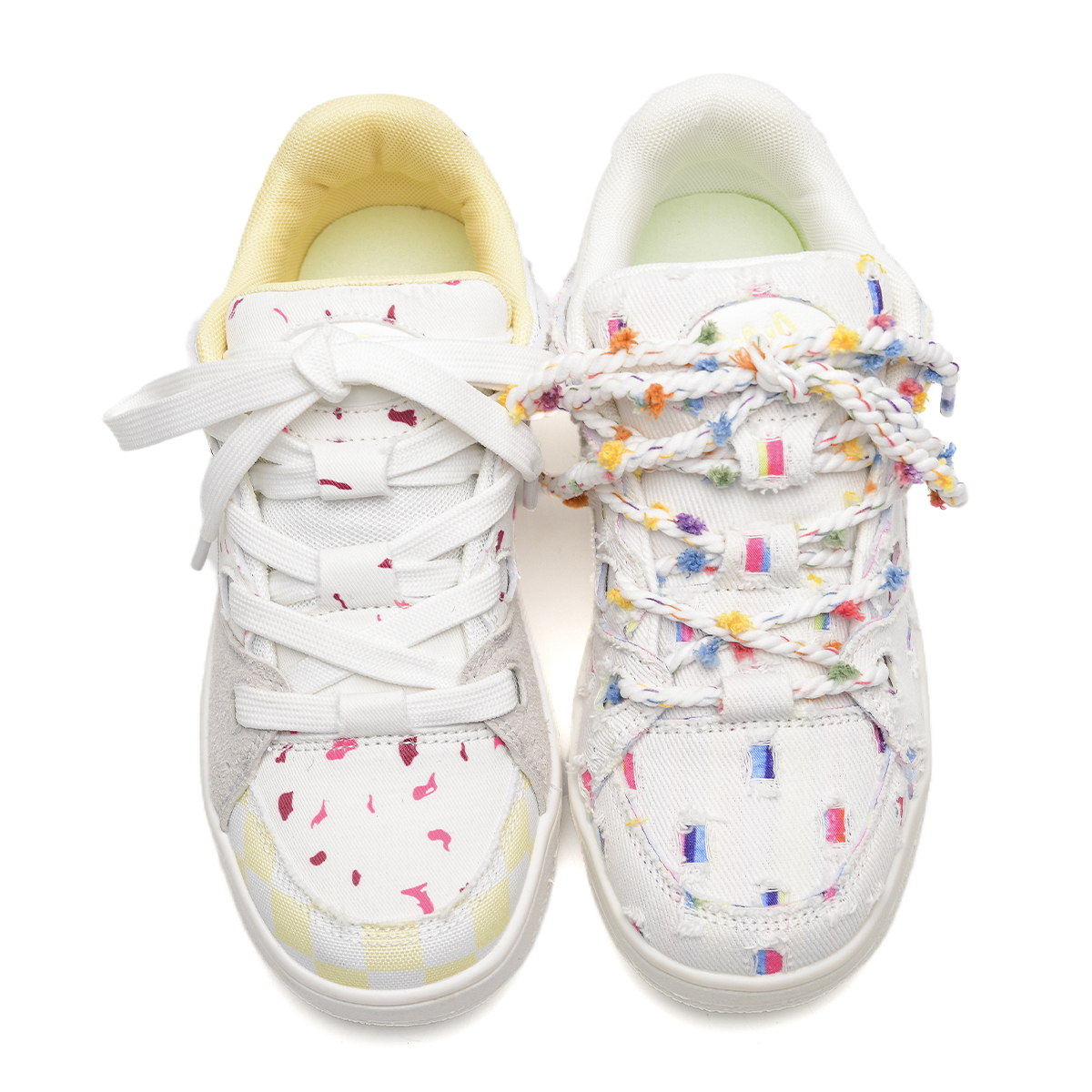 Кроссовки для скейтбординга унисекс низкие белые с маленьким кругом, непарные (случайные левый и правый)