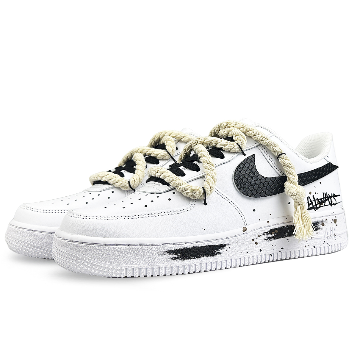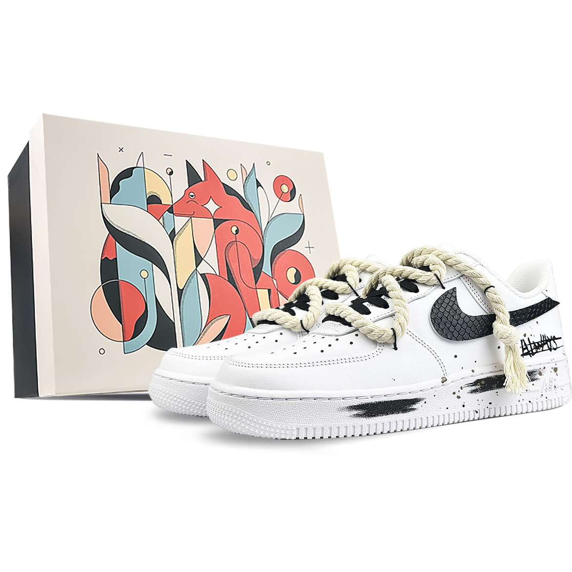 Эти кастомные кроссовки основаны на оригинальной модели Nike Air Force 1 07, доступной как для мужчин, так и для женщин. Модель CW2288-111. Эти модные кроссовки, выполненные преимущественно в белом и черном цветах, отличаются уникальным дизайном, сочетающим современное граффити с минималистичным дизайном. Деконструированные шнурки создают яркий контраст, усиливая визуальное впечатление. Искусство и жизнь, аниме и улица сливаются в этом уникальном творении! Кроссовки поставляются в специальной подарочной коробке – поистине особенный подарок. Изображения представляют собой оригинальные кроссовки, поэтому возможны небольшие отклонения в цвете. Кастомные кроссовки изготавливаются вручную, поэтому каждая пара будет немного отличаться. Кожа, строчки и офсетная печать производятся на заводе и не являются частью процесса изготовления на заказ.