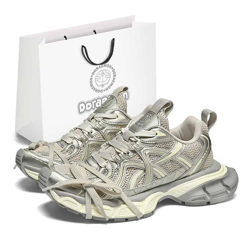 Низкие массивные кроссовки унисекс Doraemon, космическое серебро (со шнурками)