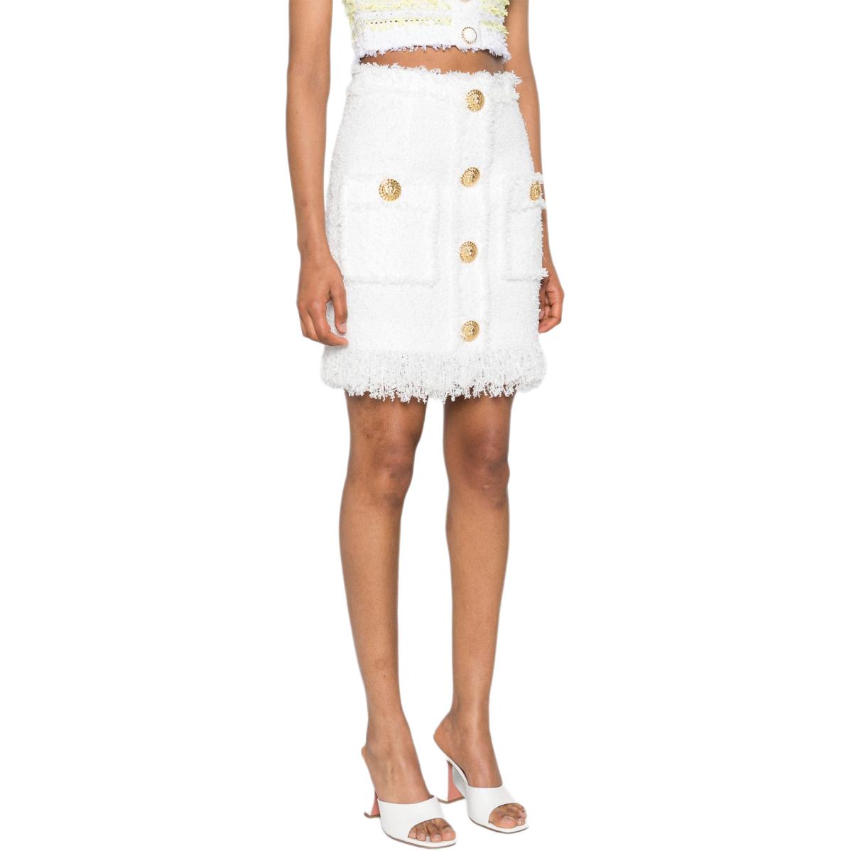 Высокая талия Твид Мини-юбка BALMAIN, Белый